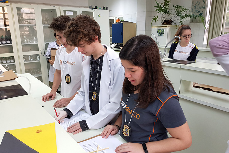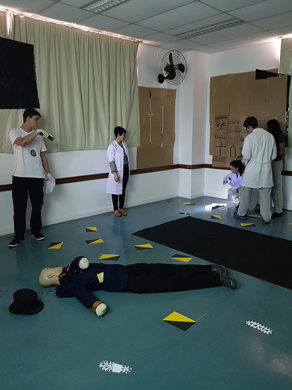 Os alunos do Ensino Médio da Unidade Higienópolis envolveram-se em uma simulação da rotina da Perícia Criminal, durante o Módulo Eletivo CSI Rio Branco, que aconteceu nos dias 28 e 29 de maio.