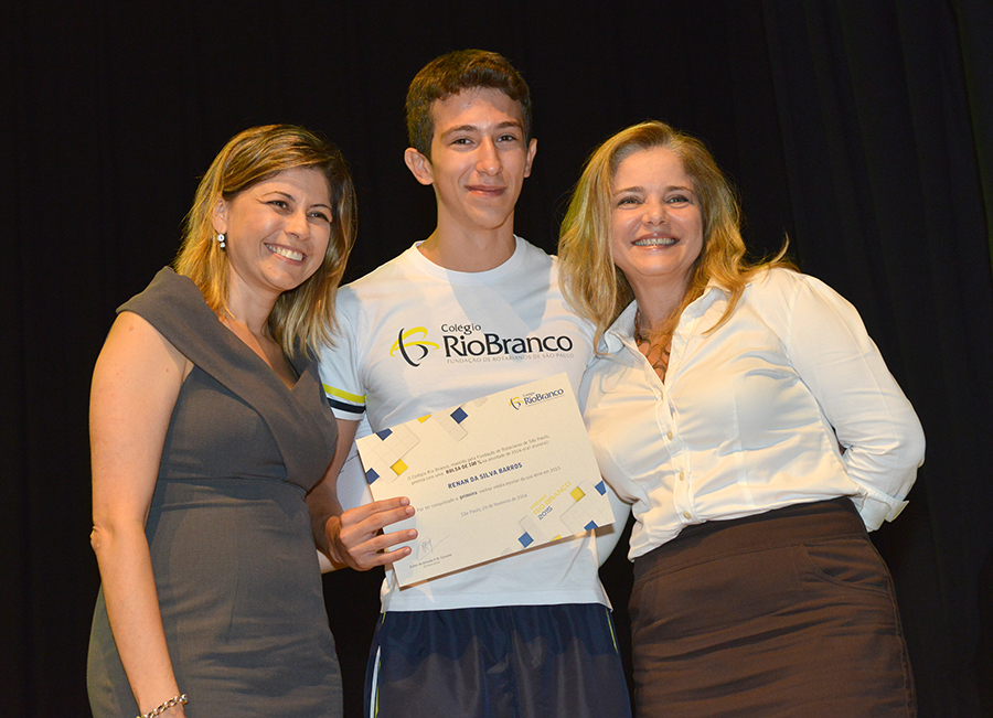 Na ocasião, foi entregue, também, a Bolsa Prêmio Rio Branco, que reconhece, com uma bolsa de estudos, os três alunos de cada série do Ensino Fundamental II e do Ensino Médio com melhor desempenho. O melhor aluno do 3º ano do Ensino Médio de 2015, de cada unidade, ganhou um notebook, apoiando a trajetória acadêmica com a entrada no ensino superior. As bolsas reconhecem não apenas os estudantes, mas, também, as famílias, pelo incentivo aos filhos.