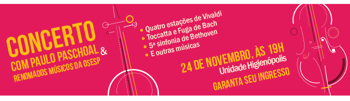 Concerto com Paulo Paschoal & Renomados Músicos da OSESP - 24/11, às 19h - Unidade Higienópolis - Garanta seu ingresso