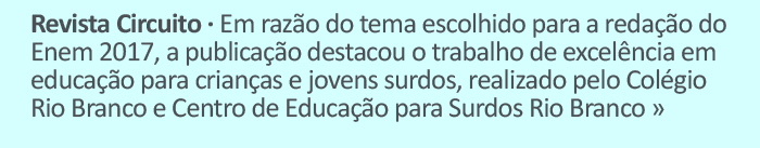 Revista Circuito - Em razão do tema escolhido para a redação do Enem 2017, a publicação destacou o trabalho de excelência em educação para crianças e jovens surdos, realizado pelo Colégio Rio Branco e Centro de Educação para Surdos Rio Branco