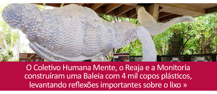 Responsabilidade e visibilidade: baleia construída com copos plásticos promove reflexão sobre o lixo