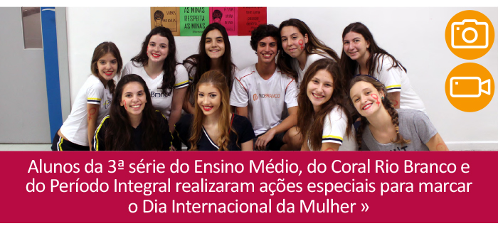 Alunos da 3ª série do Ensino Médio, do Coral Rio Branco e do Período Integral realizaram ações especiais para marcar o Dia Internacional da Mulher.