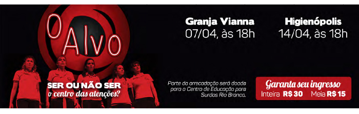 Espetáculo: O Alvo - Ser ou não ser o centro das atenções? - Granja Vianna 07/04 e Higienópolis 14/04 - Garanta seu ingresso!