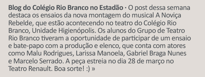 Você está cadastrado na base de dados do Colégio Rio Branco, que respeita a sua privacidade e é contra o spam na rede.