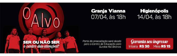 Espetáculo: O Alvo - Ser ou não ser o centro das atenções? - Granja Vianna 07/04 e Higienópolis 14/04 - Garanta seu ingresso!