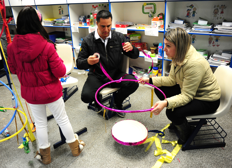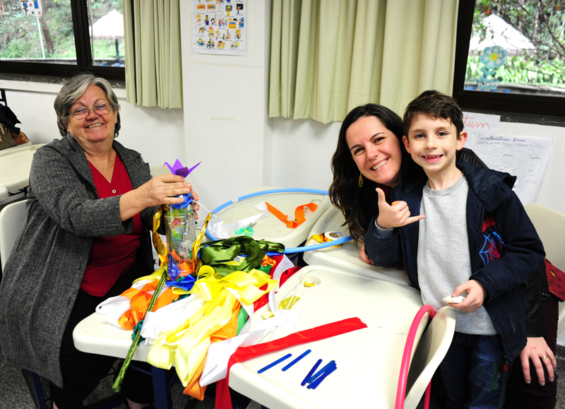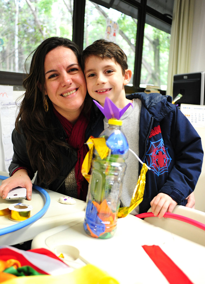 O Festival do Livro em Família foi um sucesso e as oficinas foram momentos de interação e criatividade entre os alunos, familiares e professores. Os pais e filhos construíram esculturas sonoras e móbiles que, depois de prontos, foram colocados em vários espaços da escola, para que todos possam brincar e apreciar as obras.
