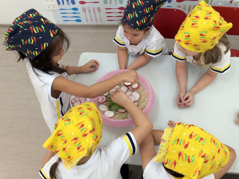 Os alunos do Período Integral da Unidade Higienópolis participaram de uma atividade especial e encantada durante a Cooking Class: aprenderam a fazer uma receita retirada do livro “A cozinha encantada dos contos de fada”, de Katia Canton.