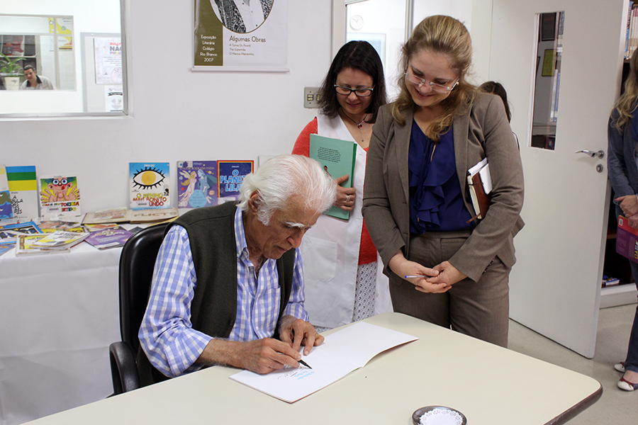 Estiveram presentes para receber o autor, a diretora-geral do Colégio Rio Branco, Esther Carvalho; as diretoras assistentes, Valquíria Rodrigues e Maria Olívia Montenegro; e a bibliotecária Valéria Wente da Silva Cavalcanti.