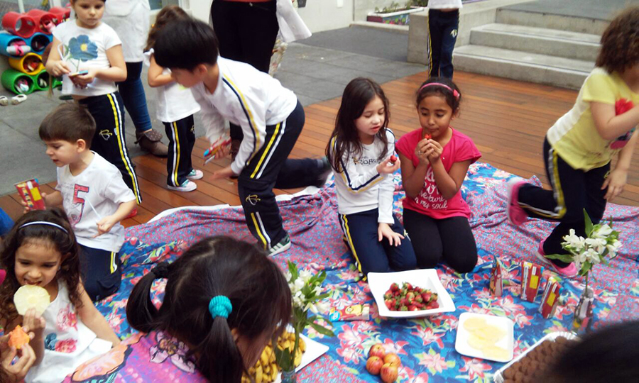 Como parte das comemorações, todos participaram de um delicioso piquenique repleto de frutas, flores e imagens da natureza, muitas delas escolhidas e trazidas pelos alunos.