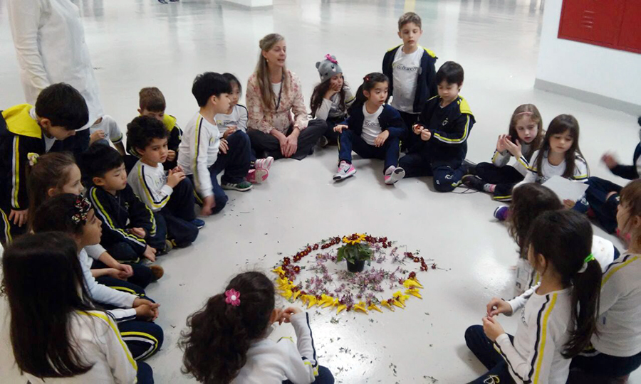 Uma das atividades realizadas com os alunos foi o Spring Treasure Hunt. Essa caça ao tesouro aconteceu a partir de uma história contada pela coordenadora de Inglês, Carmen Maria Hester, que envolvia personagens mitológicos do folclore britânico como, fadas e duendes. “Segundo essa mitologia, as personagens atuam como guardiões da natureza. As crianças se divertiram muito e demostraram muito interesse em conhecer um pouco desse mundo mágico”, contou.