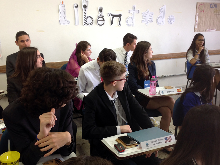 Representando as delegações dos Estados Unidos, Tunísia e organizações internacionais como, a FAO e a ACR, os jovens, acompanhados pela coordenadora de História, Lais Olivato, e pelo professor Rogério Ribeiro Jorge, integraram debates sobre relações internacionais e participam de projeções futuras sobre crise dos alimentos, iminência de uma Terceira Guerra Mundial e corrida espacial.