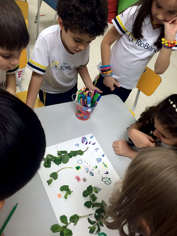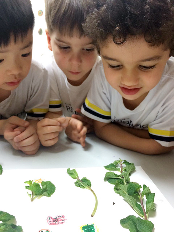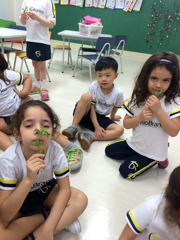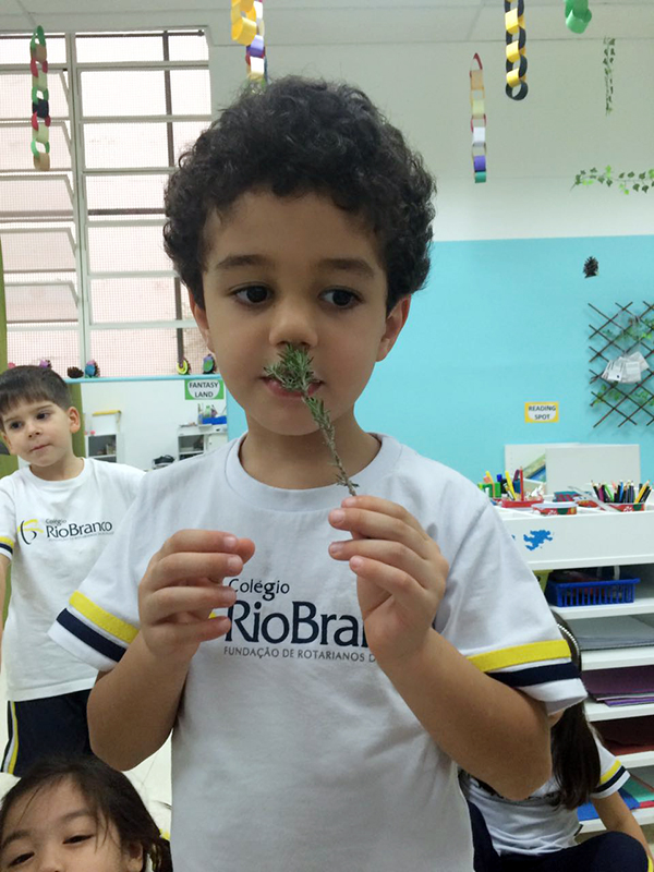 As crianças do Grupo 1 do Período Integral da Unidade Higienópolis tiveram a oportunidade de conhecer diversos temperos: o tomilho, o manjericão e a hortelã.