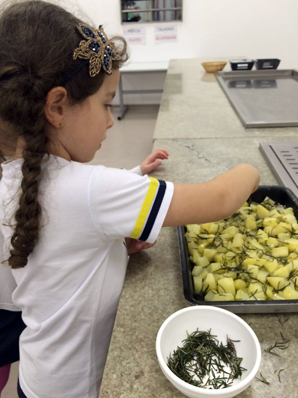 Nesta atividade, os alunos demonstraram muito entusiasmo em poder sentir o cheiro e experimentar cada um dos temperos. Para enriquecer ainda mais essa experiência, os temperos estão sendo utilizados na Cooking Class.