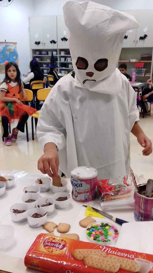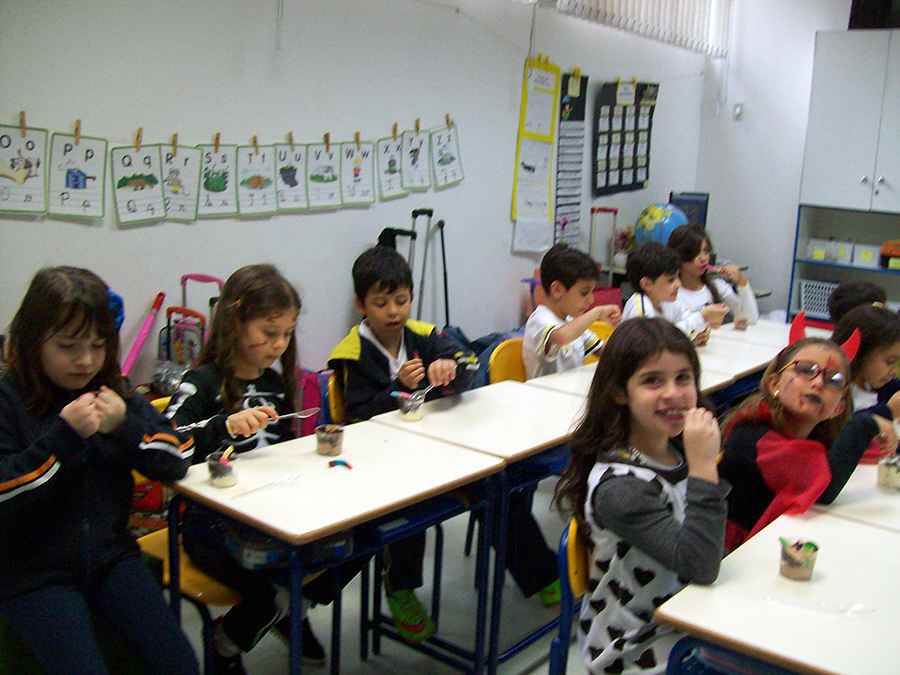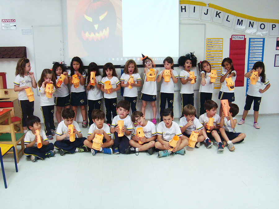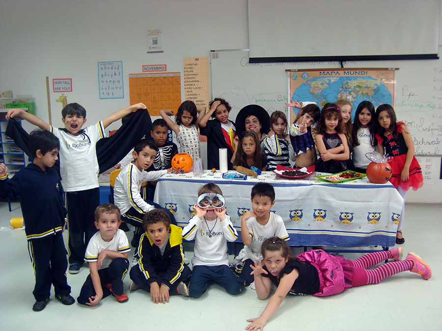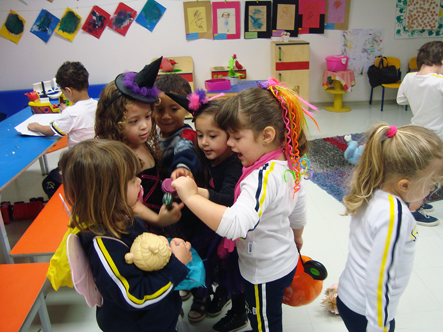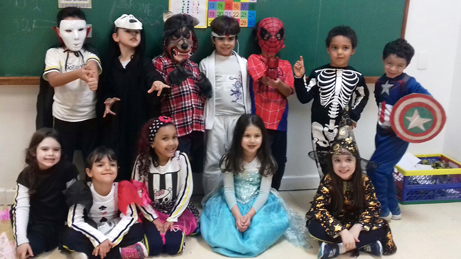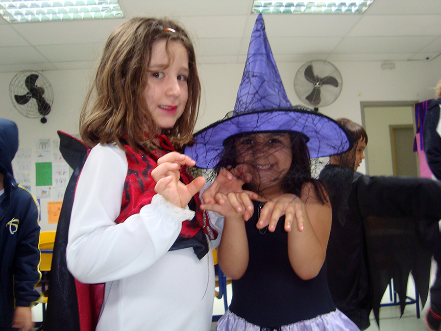 No período regular, todas as crianças se fantasiaram dos mais diferentes personagens e passearam pela escola, fazendo o ‘Trick or Treat’ – Gostosuras ou Travessuras, compartilhando doces feitos por eles mesmos e recitando um poema tradicional para essa brincadeira. A comemoração, que foi toda em Inglês, contou, também, aprendizado de músicas, brincadeiras e desfile de fantasias.