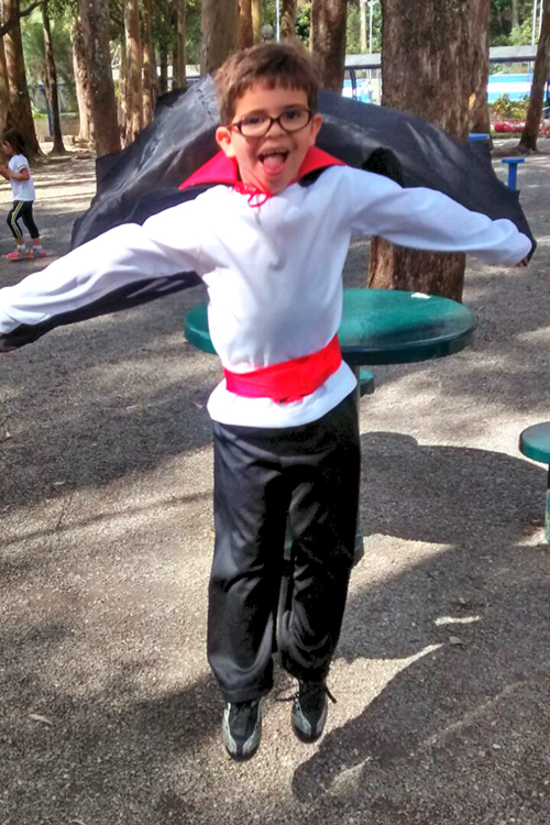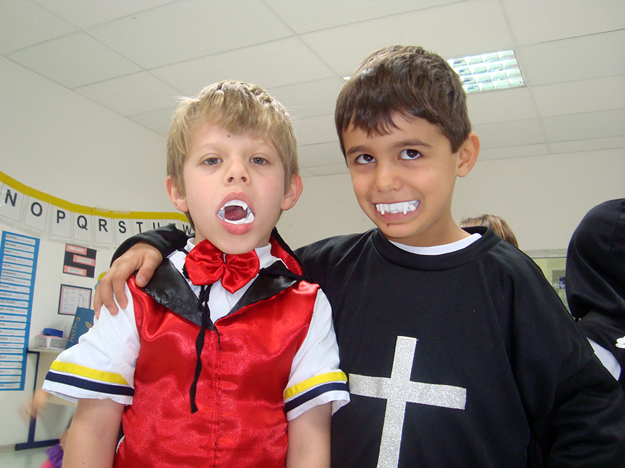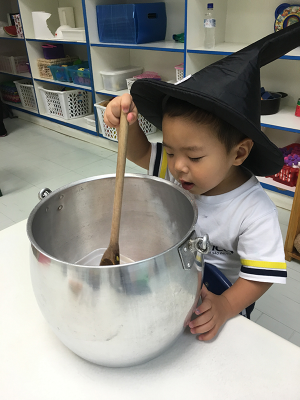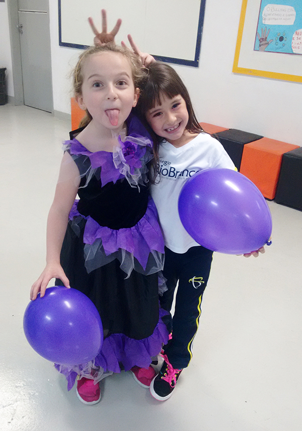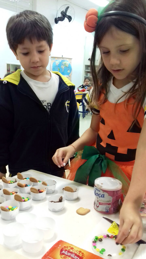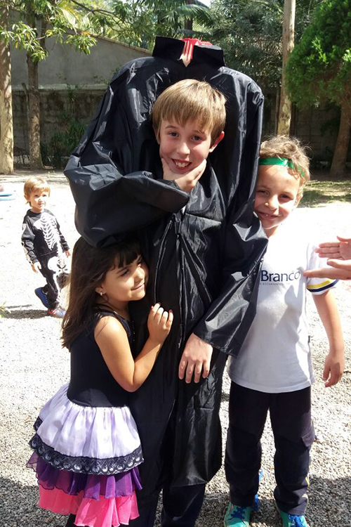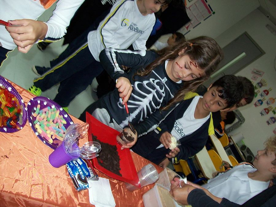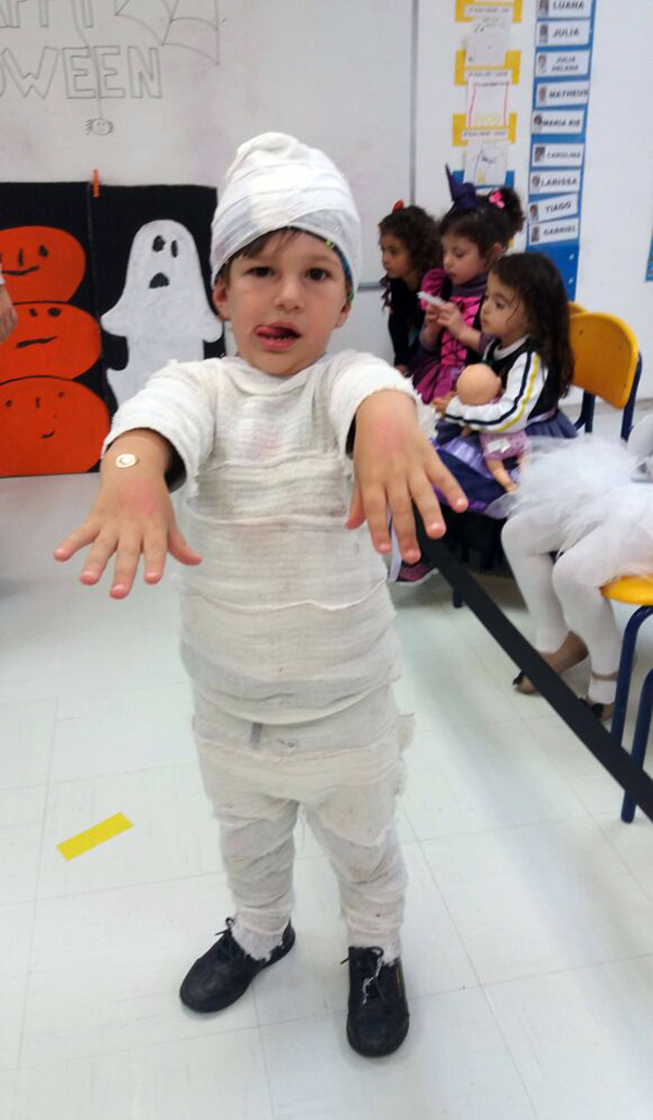 No período regular, todas as crianças se fantasiaram dos mais diferentes personagens e passearam pela escola, fazendo o ‘Trick or Treat’ – Gostosuras ou Travessuras, compartilhando doces feitos por eles mesmos e recitando um poema tradicional para essa brincadeira. A comemoração, que foi toda em Inglês, contou, também, aprendizado de músicas, brincadeiras e desfile de fantasias.