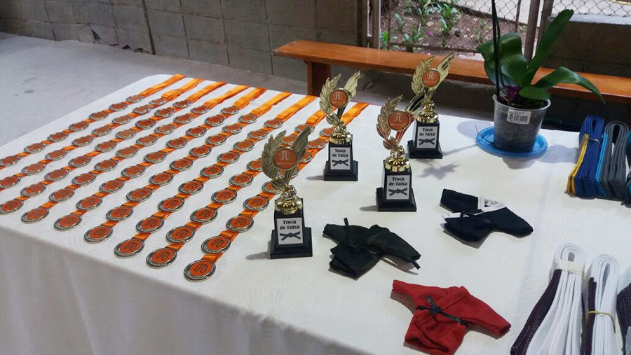 Para finalizar e concretizar o evento, os alunos receberam um certificado e realizaram a troca de faixas.