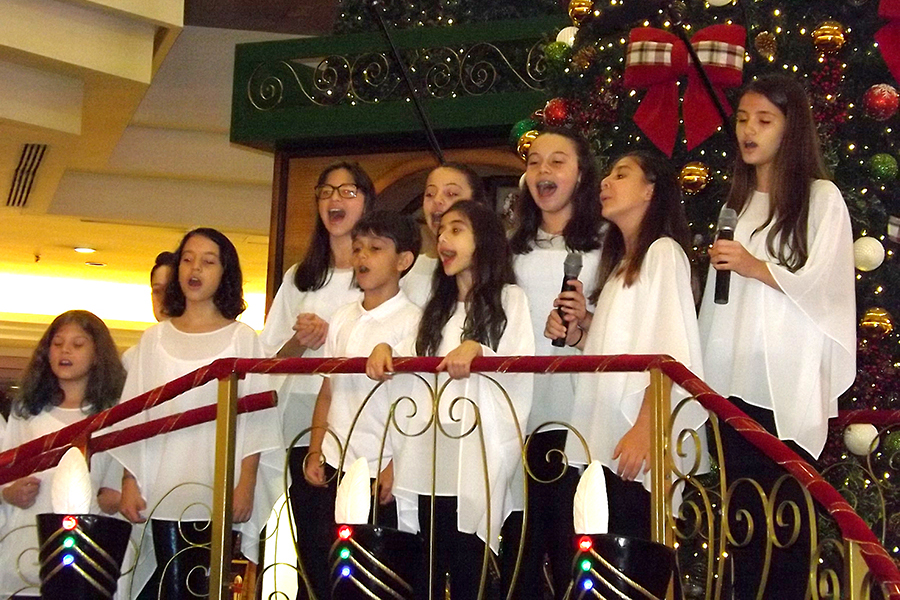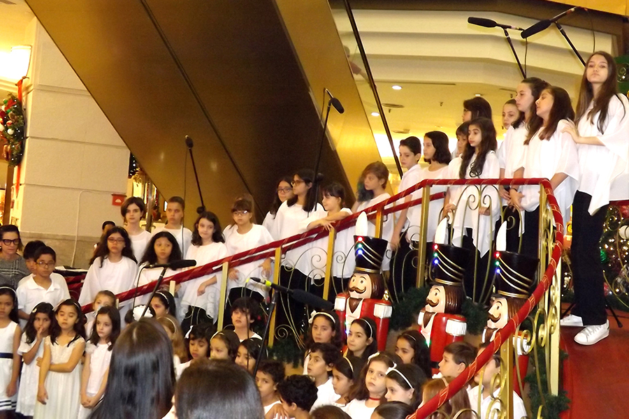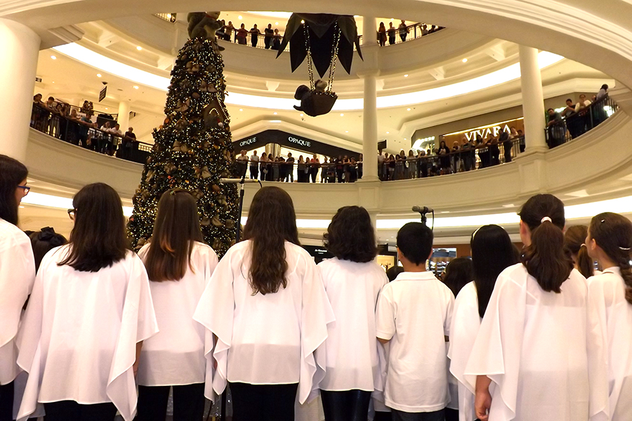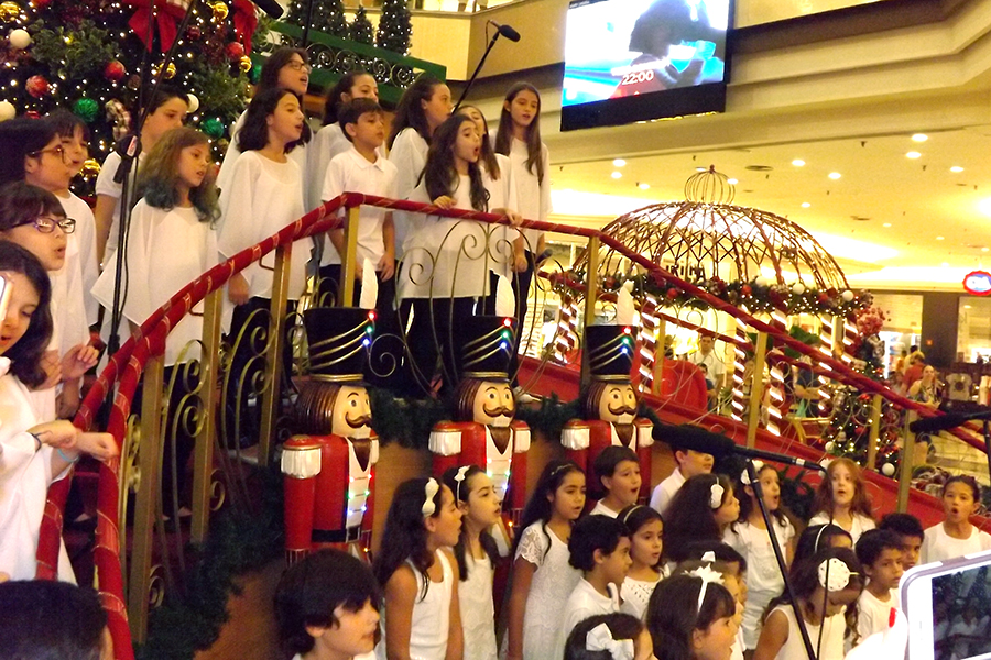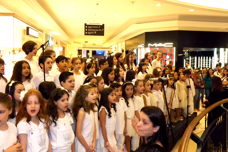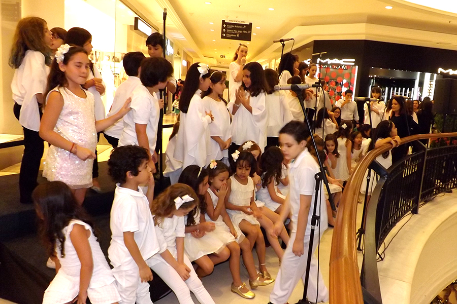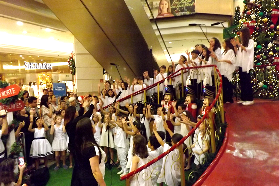 Os alunos do Coral Rio Branco de Higienópolis realizaram emocionantes apresentações em três dias: em 03 de dezembro, no Shopping Vila Olímpia, no em 10 de dezembro, no Shopping Eldorado, e no dia 14 de dezembro no Pátio Higienópolis.