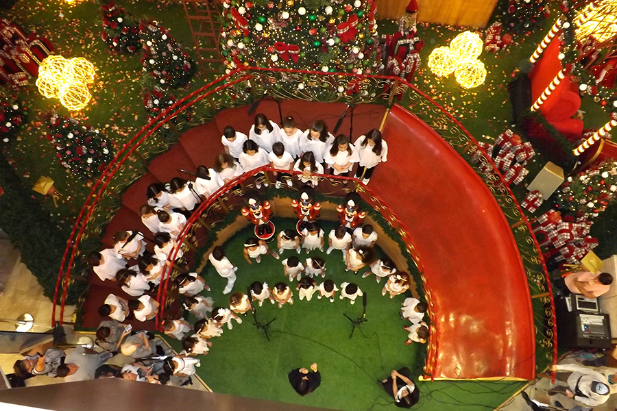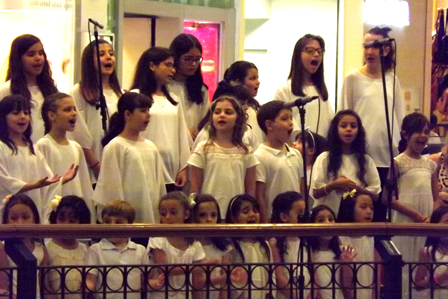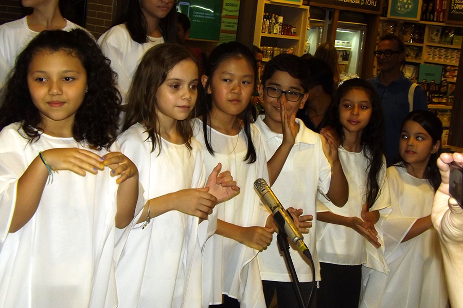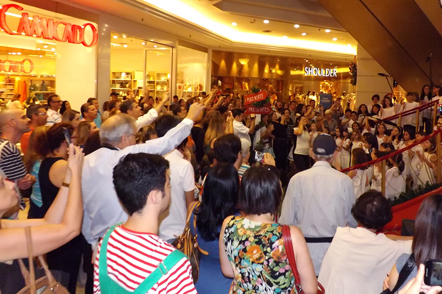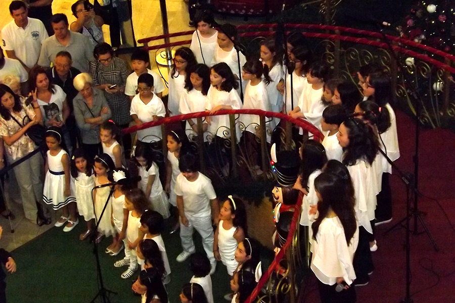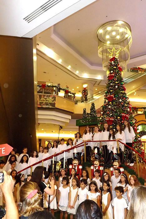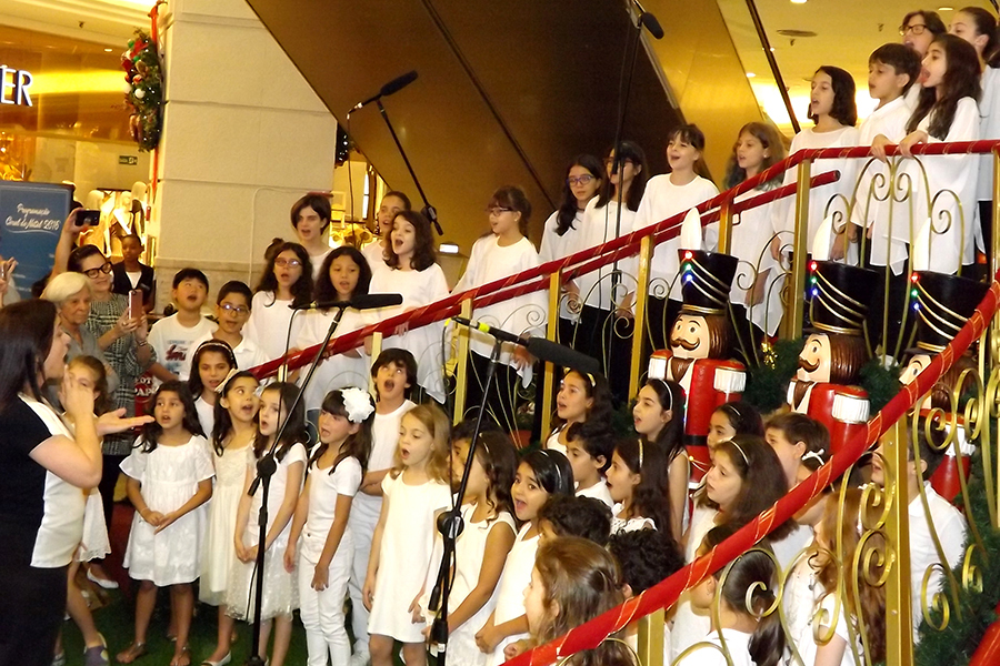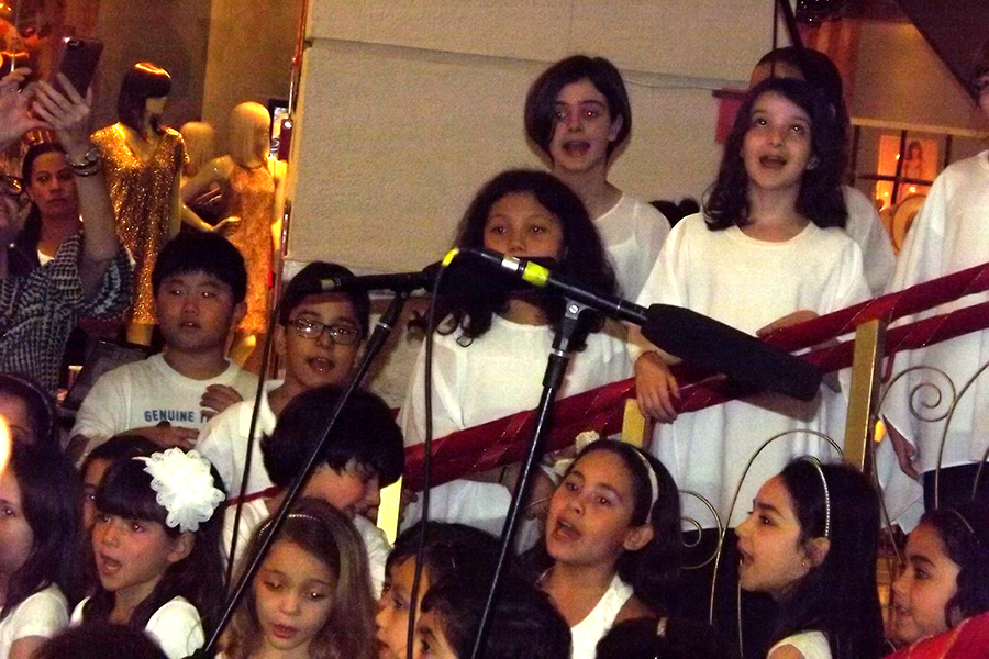 Os alunos do Coral Rio Branco de Higienópolis realizaram emocionantes apresentações em três dias: em 03 de dezembro, no Shopping Vila Olímpia, no em 10 de dezembro, no Shopping Eldorado, e no dia 14 de dezembro no Pátio Higienópolis.