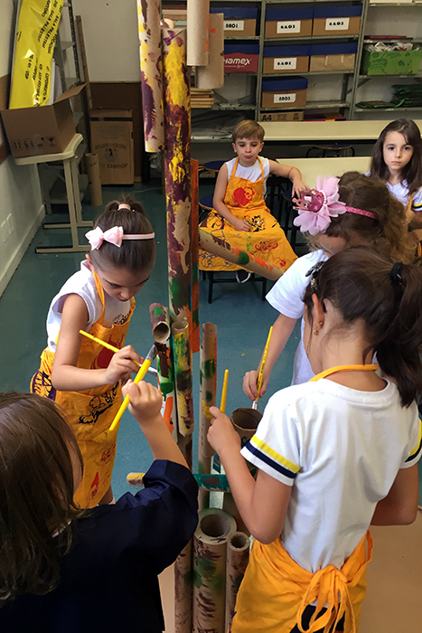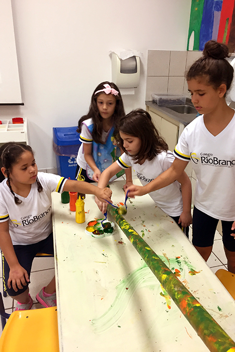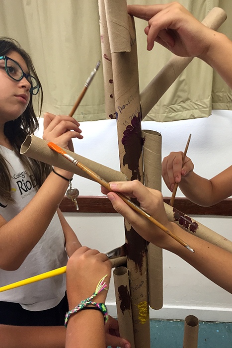 Os alunos do Ateliê de Artes e do Período Integral do Colégio Rio Branco, Unidade Higienópolis, durante a aula de Artes, aprenderam sobre Construtivismo e desenvolveram uma obra de arte coletiva.