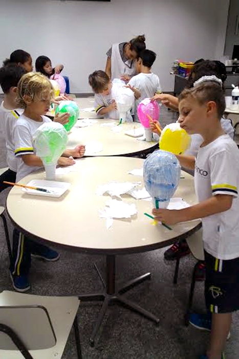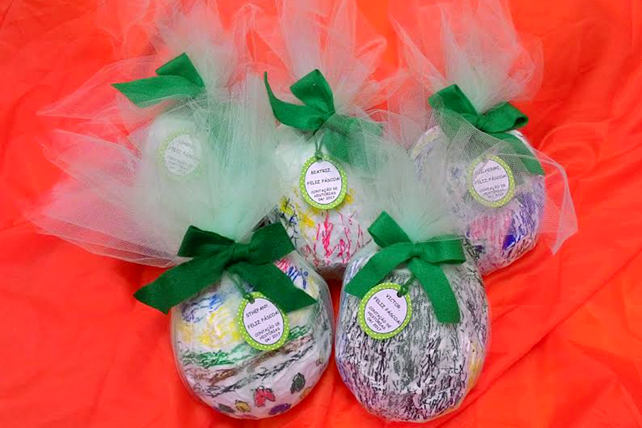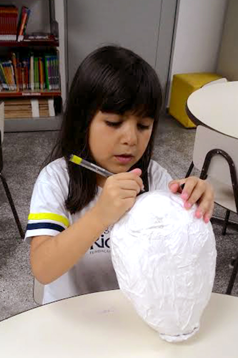 As crianças aprenderam o passo a passo para montar o ovo de páscoa, escolheram o tamanho do ovo, utilizando uma bexiga como estrutura para colar o papel machê. Após a secagem do ovo, fizeram a decoração com diversos desenhos Uma verdadeira obra de arte!