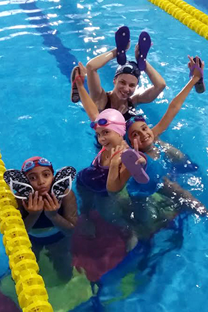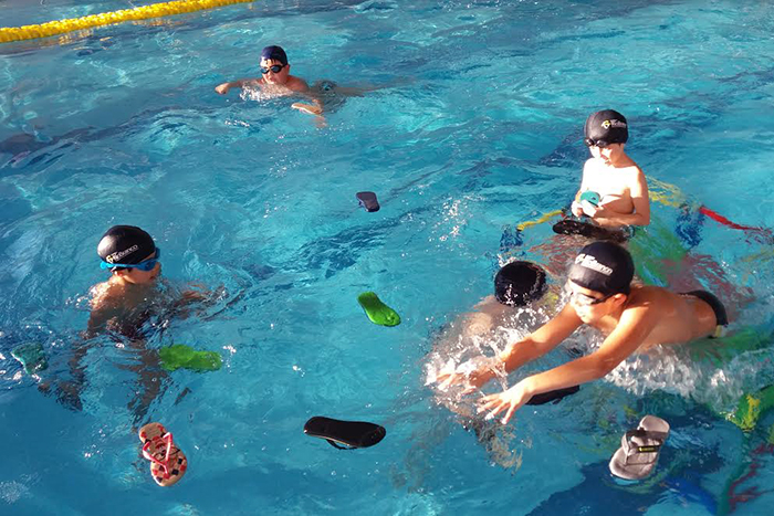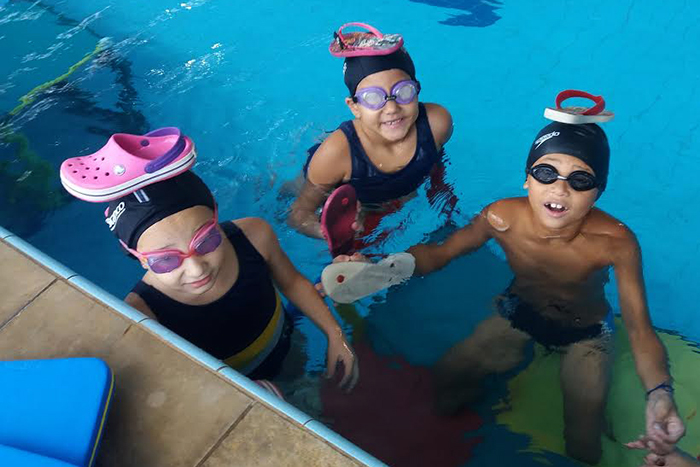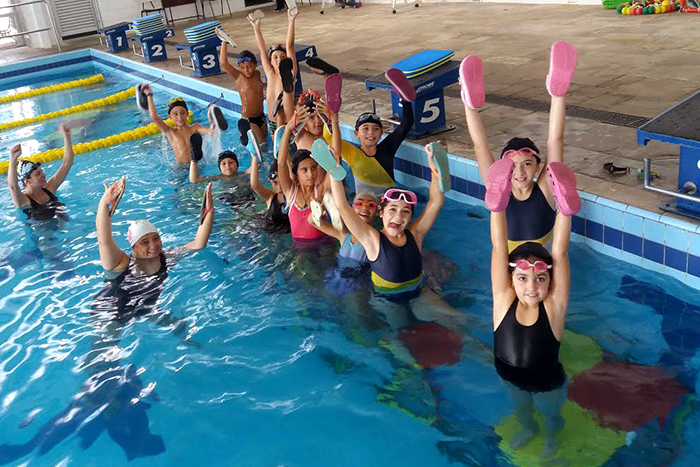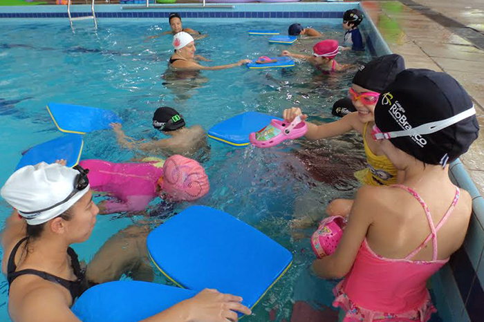 Diversão e aprendizado. Os alunos da Educação Infantil ao Ensino Médio que integram a extracurricular de Natação no Colégio Rio Branco, Unidade Granja Vianna, participaram da atividade especial Semana do Chinelo.