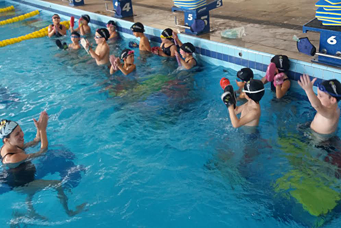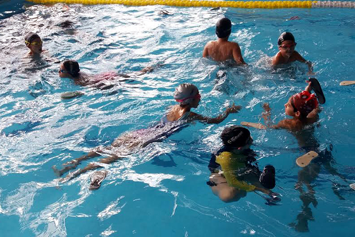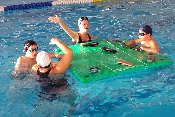 A atividade teve o objetivo de promover o aprendizado e a eficiência na propulsão de pernas em todos os estilos - borboleta, costas, peito e crawl, além da diversão e da alegria de aprender brincando.
