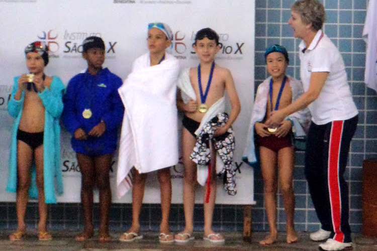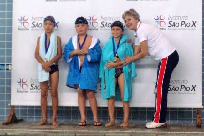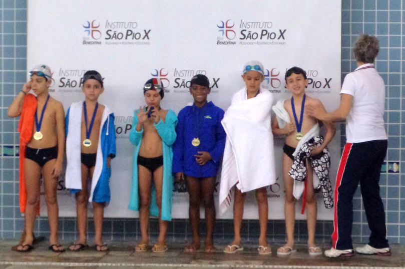 No dia 06 de maio, onze alunos que integram a atividade extracurricular de Natação do Colégio Rio Branco participaram do Festival de Natação do Instituto São Pio X.