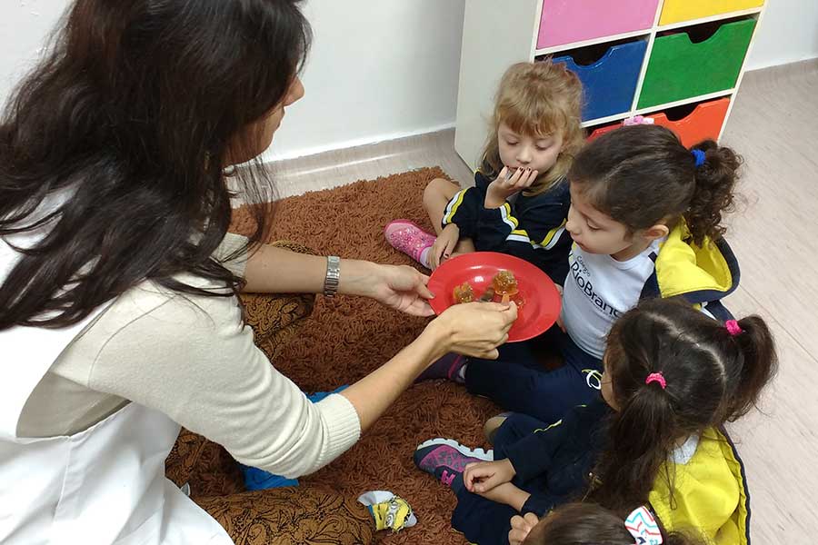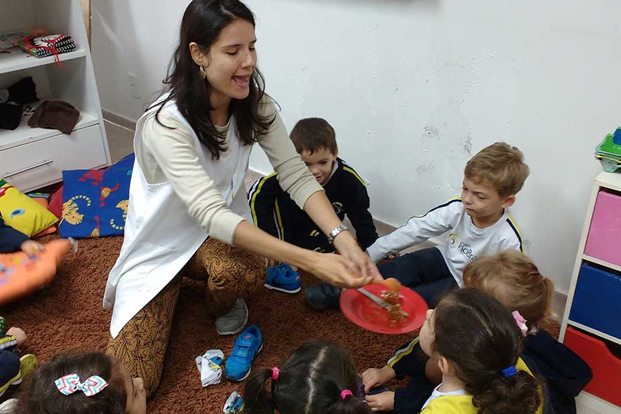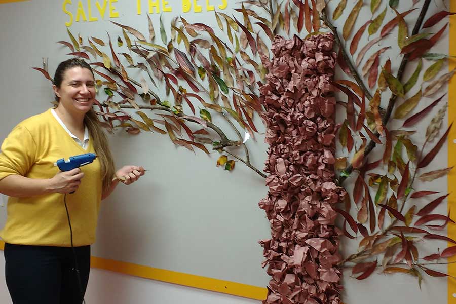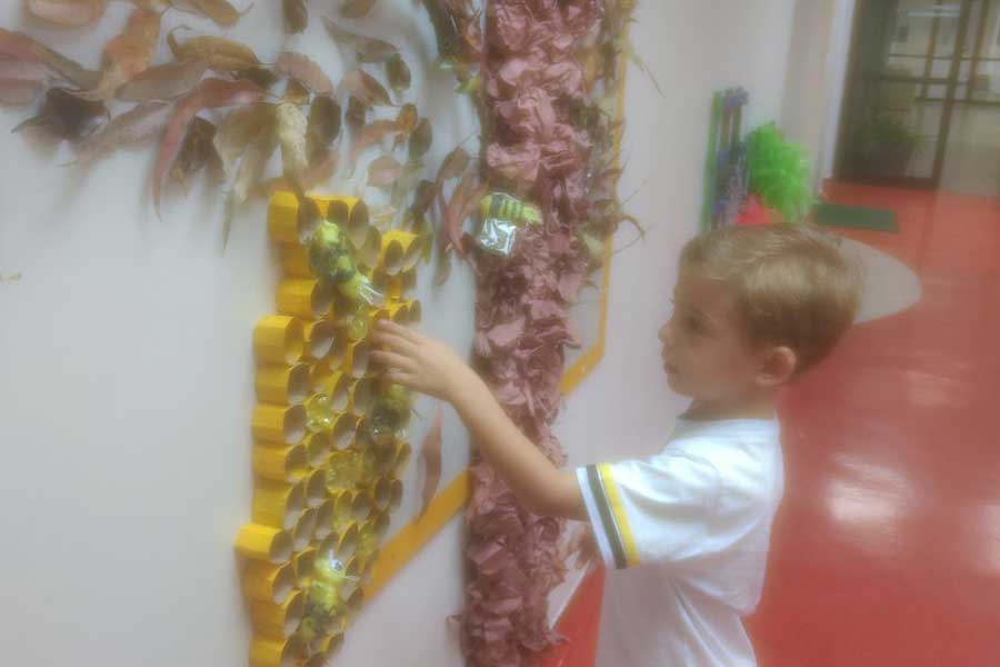 “Eles cuidaram de cada detalhe, como a diferença de tamanho, a cor e as características físicas da abelha rainha, zangões e operárias. Reproduziram o mel, os ovos e as larvas das abelhas. E para assimilarem o conceito da polinização, eles brincaram no bosque, de serem abelhas que levavam o pólen de uma flor para outra”, explicou a professora.