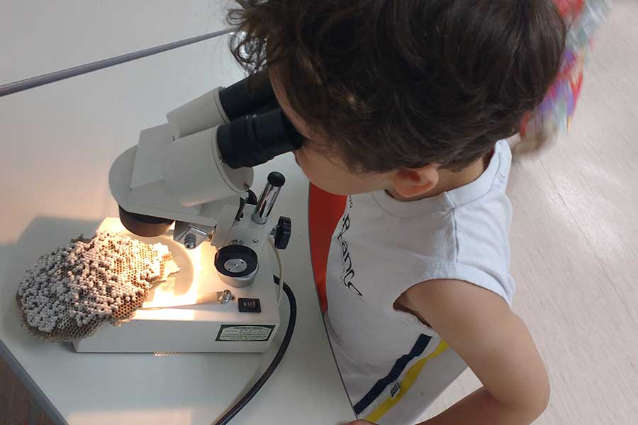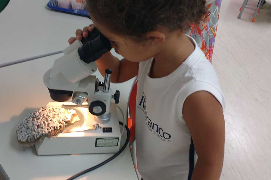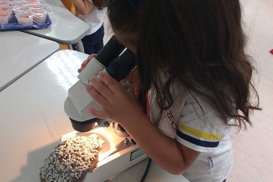 Com ajuda da uma lupa eletrônica, puderam observar o corpo da abelha. Ao ar livre, verificaram seu comportamento na natureza e, também, verificaram documentários, livros e artigos na internet.