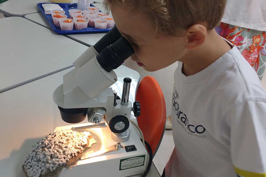 Os alunos do Grupo 1 do Período Integral do Colégio Rio Branco, Unidade Granja Vianna, participaram do projeto Save the Bees, que teve como objetivo promover a conscientização sobre a importância das abelhas para a natureza e, também, diminuir o medo que os alunos normalmente sentem em relação a esses animais.