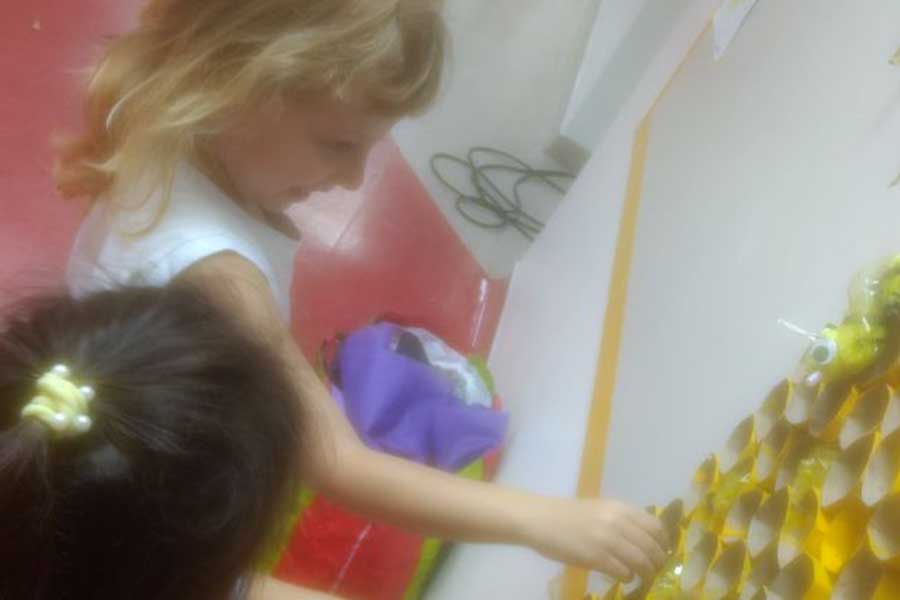 Para colocar em prática tudo o que descobriram e aprenderam, os alunos montaram uma colmeia, utilizando materiais recicláveis, como rolos de papel higiênico e massinha, ilustrando como é a vida das abelhas dentro da colmeia.