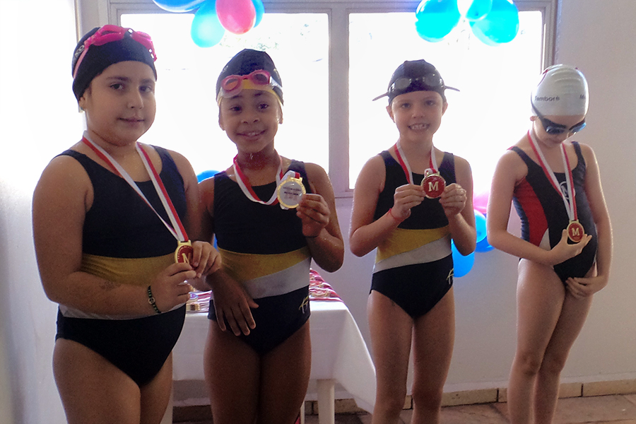 Durante o festival, os alunos fizeram provas de 25 metros crawl e, no final, receberam medalhas de ouro. “Nossos alunos estavam muito motivados e se empenharam bastante. Todos nadaram muito bem e se destacaram nas apresentações. Parabéns a todos!”, destacou a coordenadora de Natação, Ana Paula Piragibe.