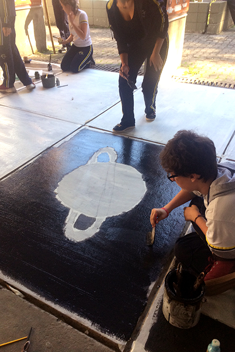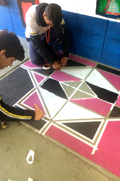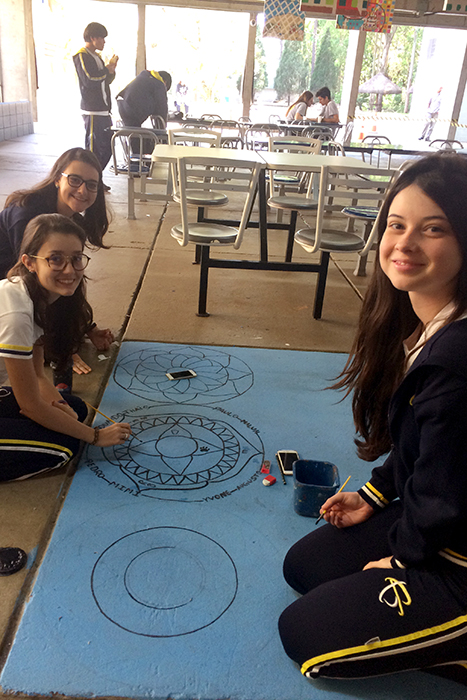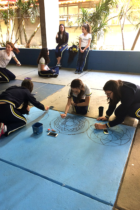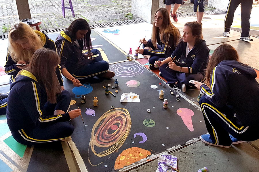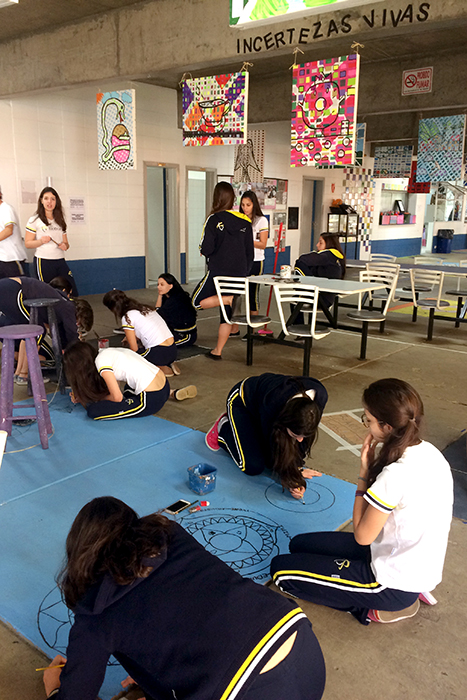 Autonomia, criatividade e artes. Os alunos da 3ª série do Ensino Médio na Unidade Granja Vianna deixam suas marcas no Pátio das Artes. A professora de Artes Denise Ayres, desenvolve o Projeto Chão, por meio do qual os jovens fazem suas manifestações artísticas.