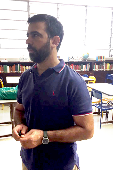 Os alunos que participaram da MINIONU acompanhados pelo coordenador de Geografia, Rogério Ribeiro Jorge