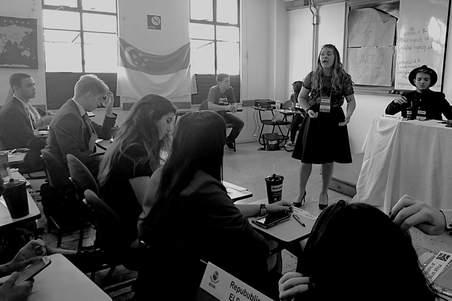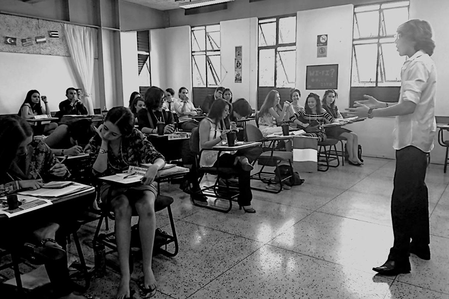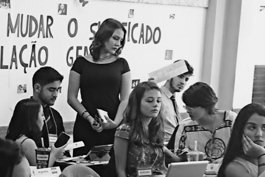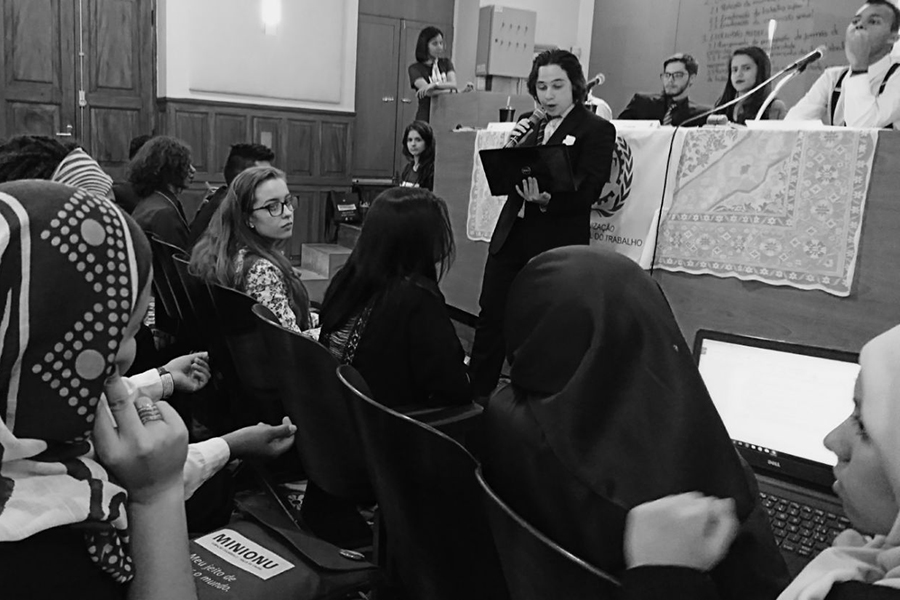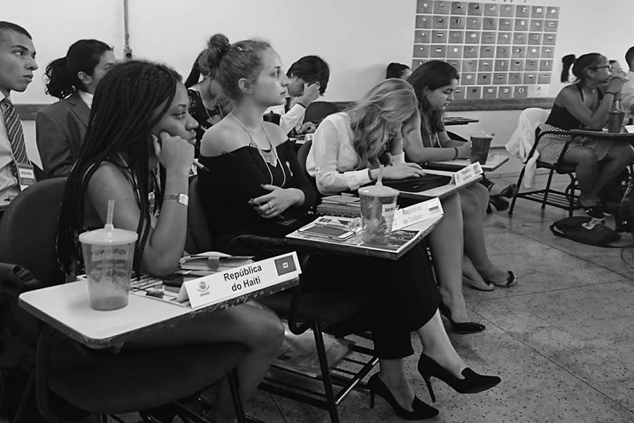 Nas simulações, os alunos vivenciam a rotina de diplomatas e precisam defender a política externa dos países que representam em órgãos internacionais. Esse exercício promove o desenvolvimento da argumentação e amplia as visões sobre o mundo.