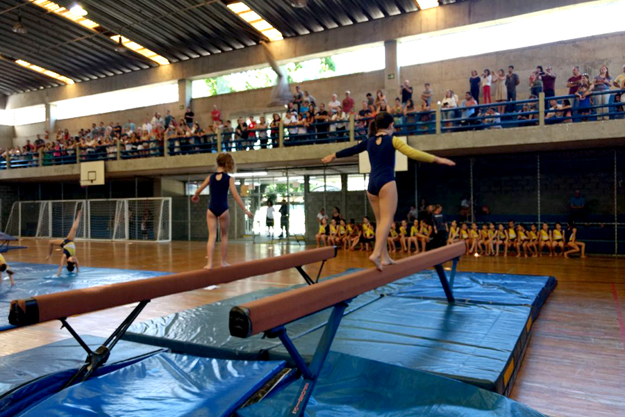 Os alunos se apresentaram nos aparelhos em sistema de rodízio, com exercícios no solo, salto e trave. Essa apresentação teve como objetivo demonstrar toda evolução adquirida ao longo do ano.