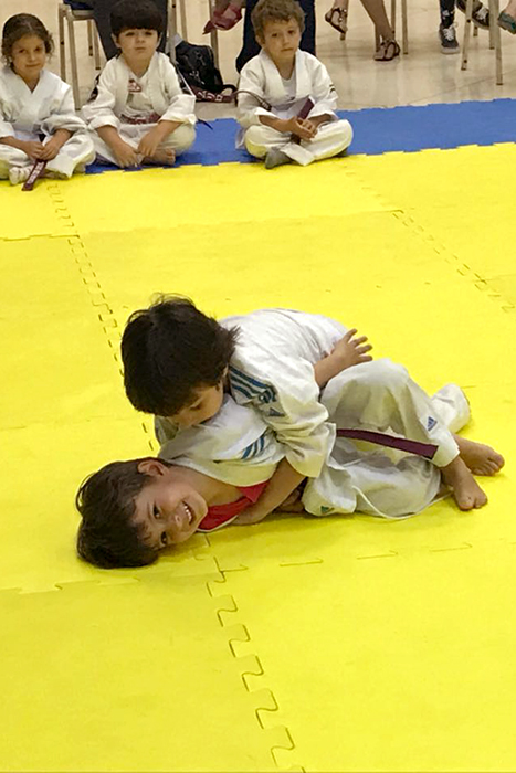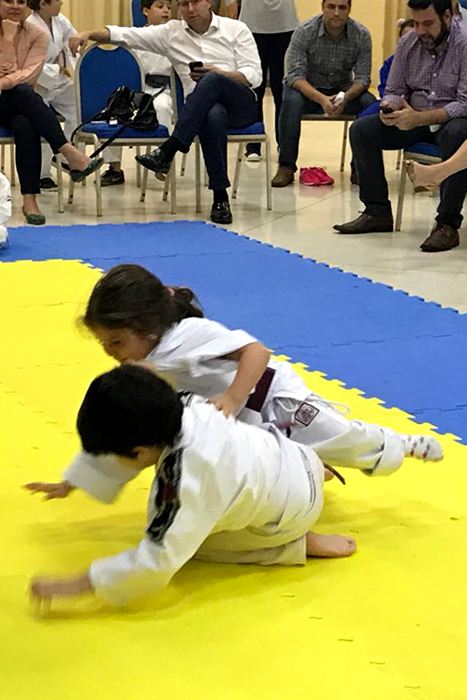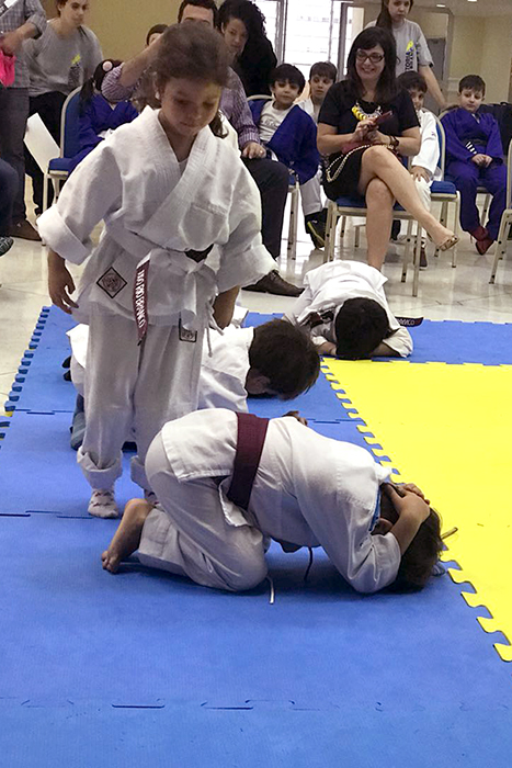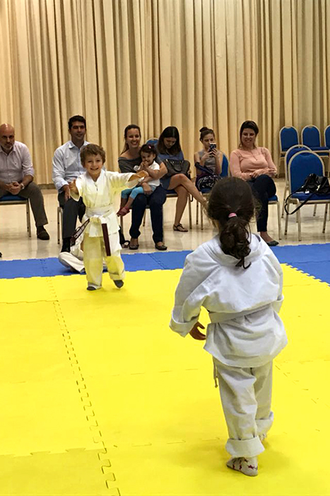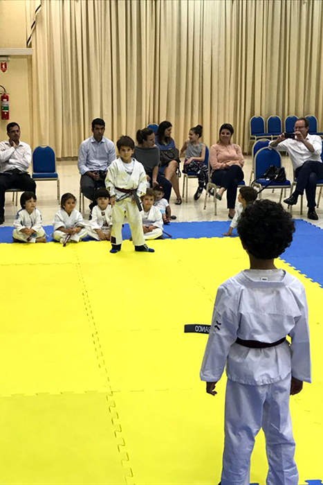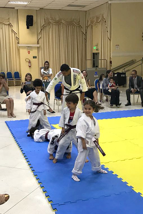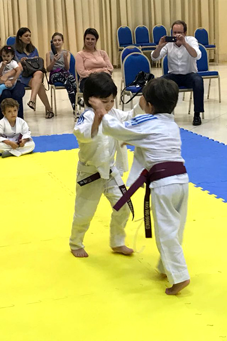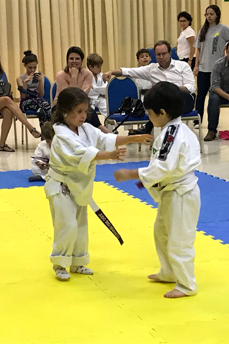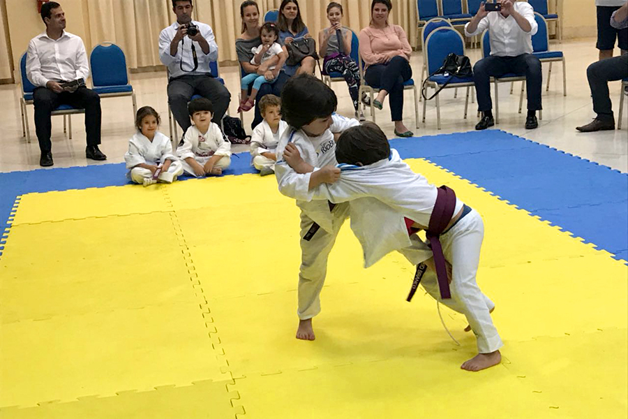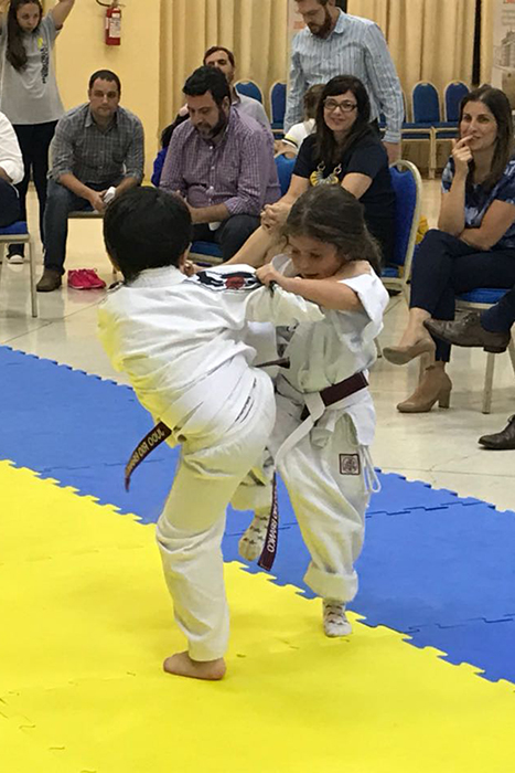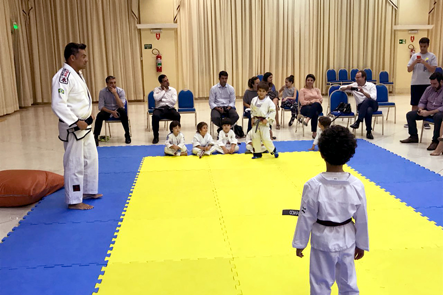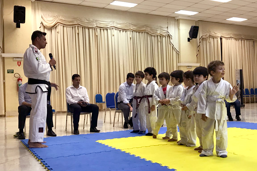 Os alunos mostraram sua evolução e desenvolvimento e realizaram uma sequência de exercícios com diversos golpes e movimentos específicos que aprenderam ao longo do ano.