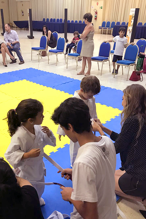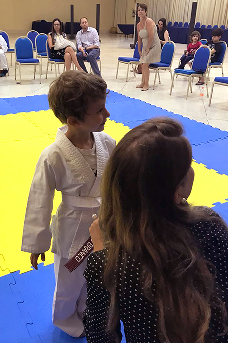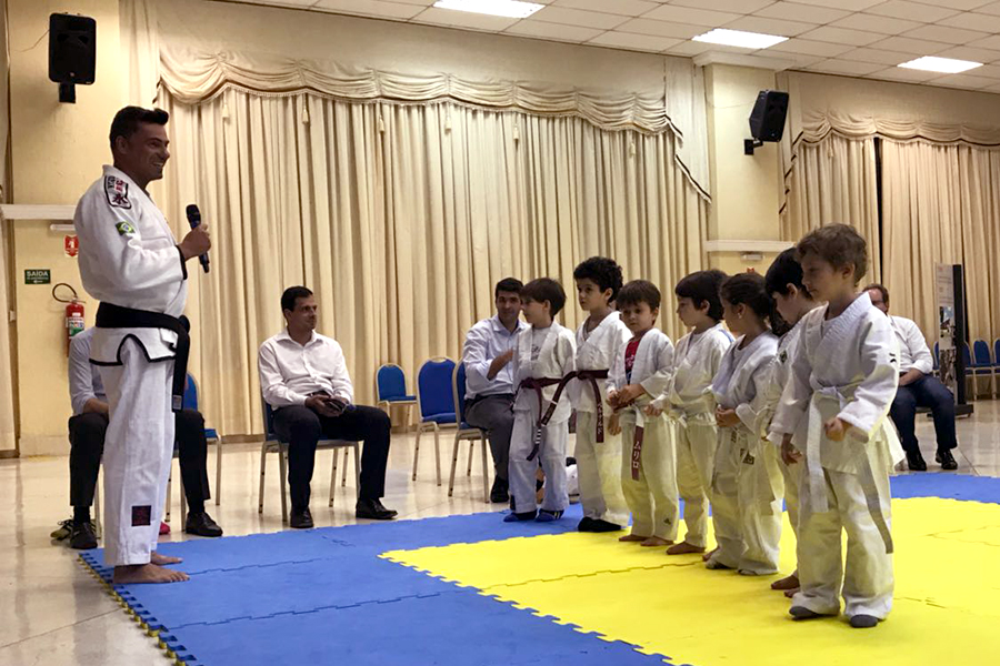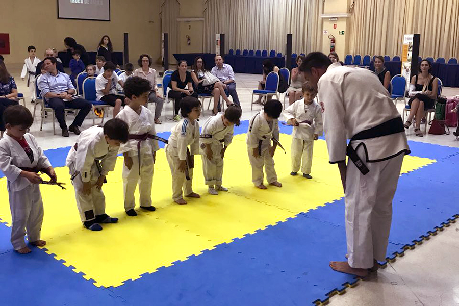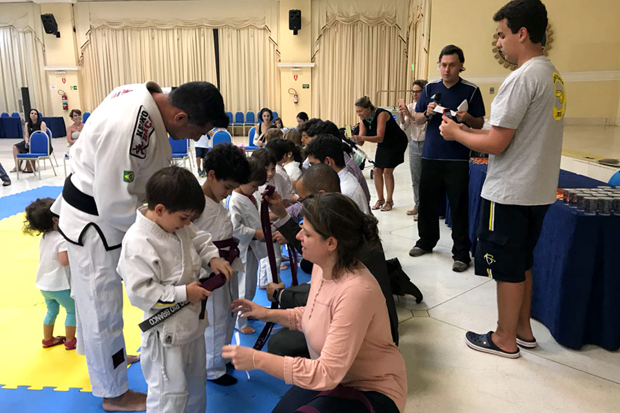 Para finalizar e concretizar o evento, os alunos receberam um certificado e realizaram a troca de faixas.