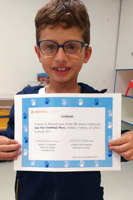 Durante o ano, foram realizadas as Oficinas de Libras para alunos ouvintes e familiares do Colégio Rio Branco, nas Unidades Granja Vianna e Higienópolis.