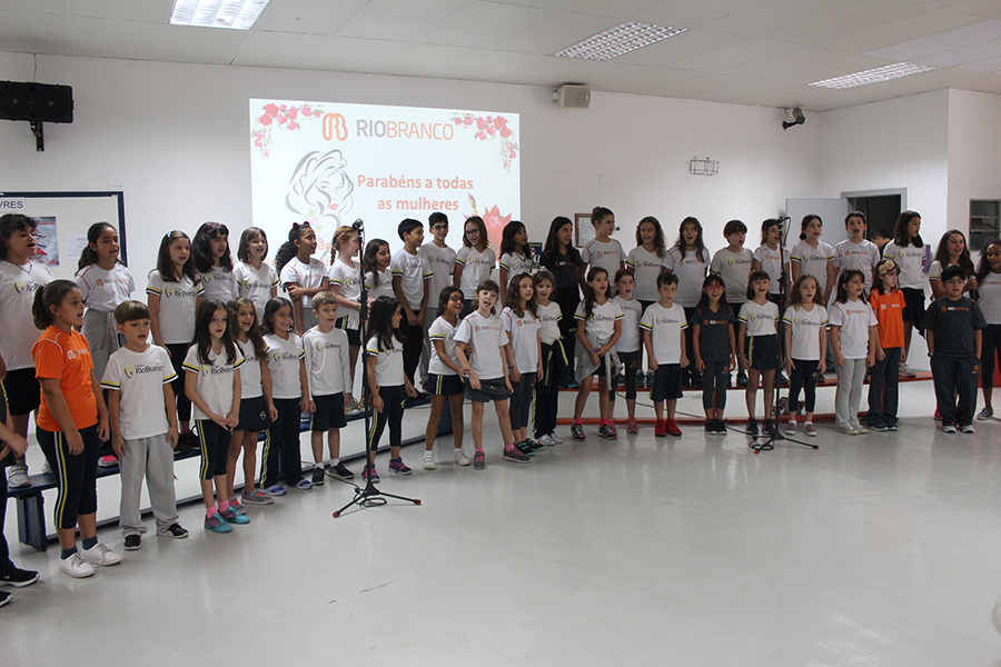 Surpreendendo e emocionando a todos, os alunos do Coral Rio Branco realizaram uma linda apresentação, no horário do almoço, das músicas “Trem-Bala” e “Trevo”.