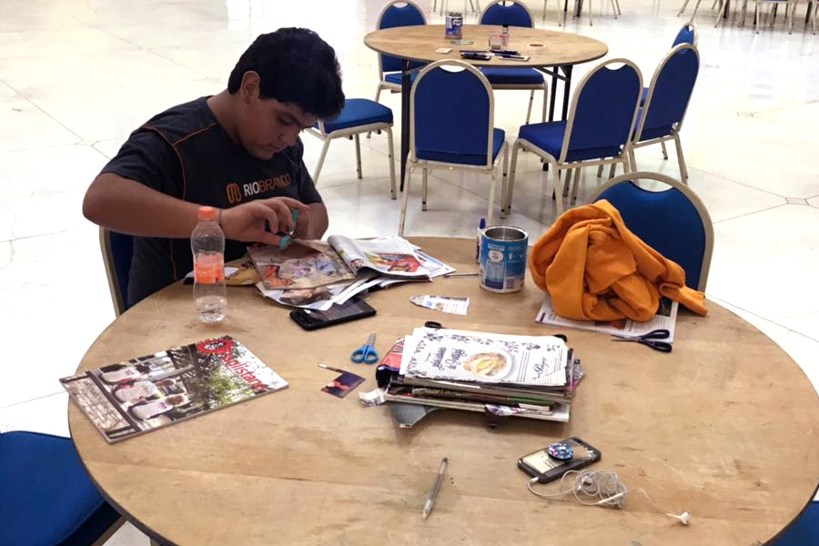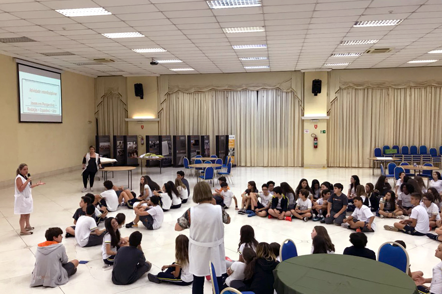Para apresentar essa proposta, os alunos participaram de uma atividade em estações, em que cada área propôs, em um único espaço, atividades diversificadas a partir do tema trabalhado em aula: O poder da imagem no mundo contemporâneo e a sua relação com o consumo.