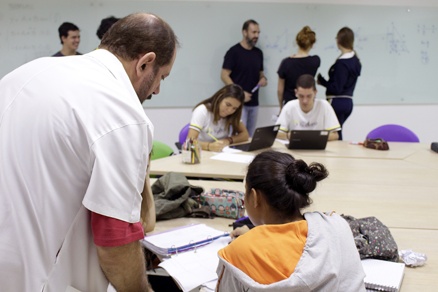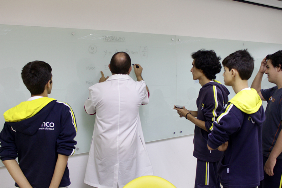 Alguns alunos da 2ª série do Ensino Médio foram convidados para que atuassem como Tutores de Matemática no período reservado ao Grupo de Estudos entre as provas. Nas salas de tecnologia aplicada, ficaram pelo menos dois alunos voluntários à disposição dos outros alunos, com computadores, listas de exercícios e material de estudo, para ajudarem a tirar dúvidas dos demais colegas das turmas.