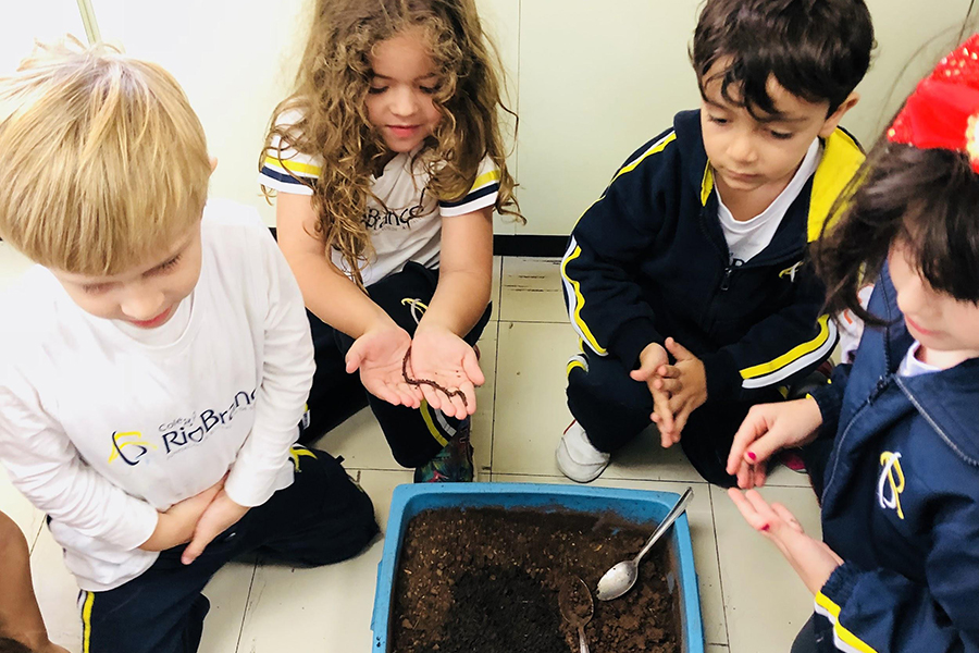 Dando continuidade ao trabalho pautado em investigação científica, os alunos do Jardim II estão estudando, ao longo do primeiro semestre, anelídeos e sua importância para o ecossistema. “Valorizando o protagonismo do aluno, a escolha do tema partiu dos próprios alunos, que após encontrarem o animal em uma de suas pesquisas quiseram conhecer mais sobre elas”, contaram as professoras.