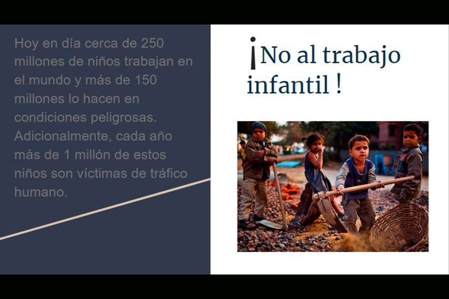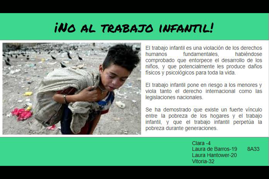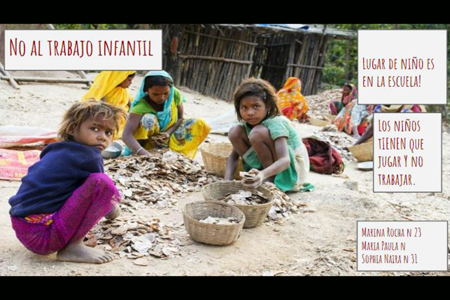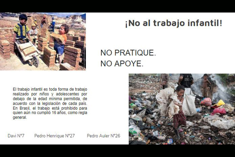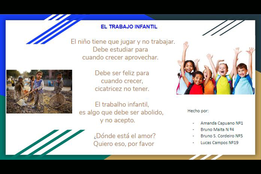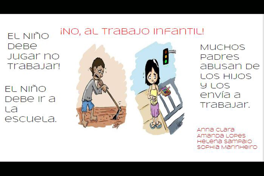 A partir da discussão, os alunos produziram cartazes que foram compartilhados no perfil do Instagram @espanolcrb, com o tema “No al trabajo infantil”.