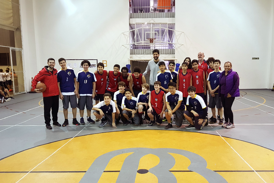 A presença do jogador campeão de Basquete, Guilherme Giovannoni, deixou o dia ainda mais especial. O esportista conversou com os alunos e treinadores sobre sua carreira e abriu o amistoso.