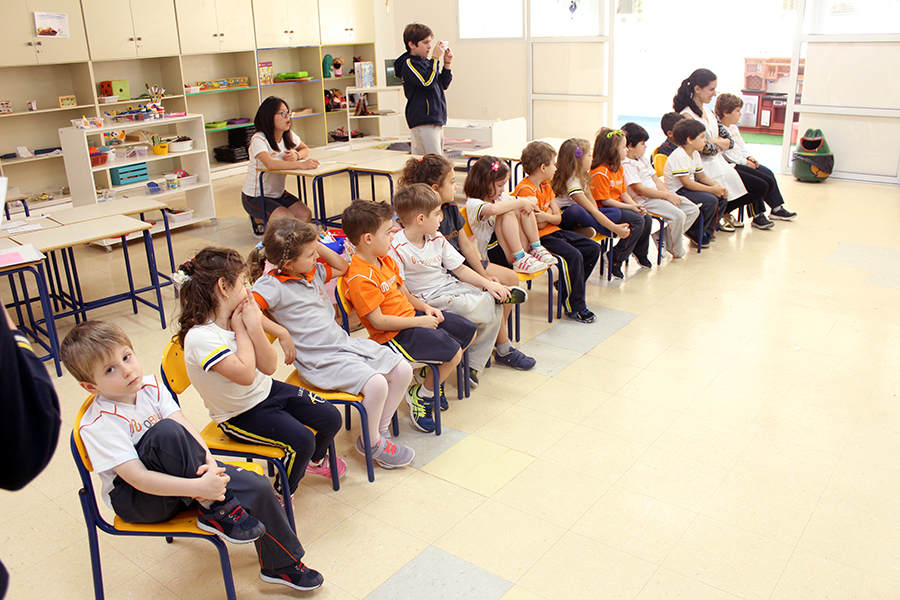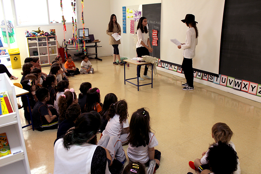 Os alunos realizaram lindas apresentações de teatro, em Espanhol, para os alunos da Educação Infantil, e depois explicaram sobre o que se tratava aquele teatrinho.