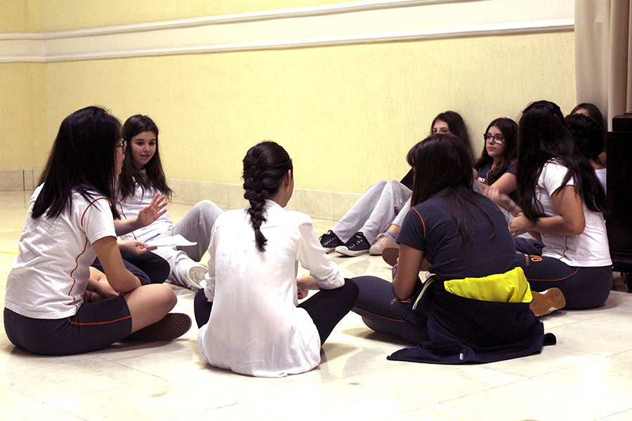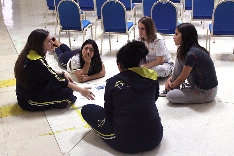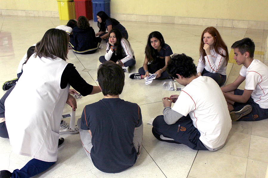 Após essa primeira atividade, os alunos participaram do segundo exercício. As professoras espalharam algumas imagens, que retratavam algum tipo de abuso infantil e pediram para que os alunos pegassem as fotos sem escolher. Depois os alunos se juntaram em grupos definidos pelas próprias imagens e discutiram sobre cada tipo de abuso.
