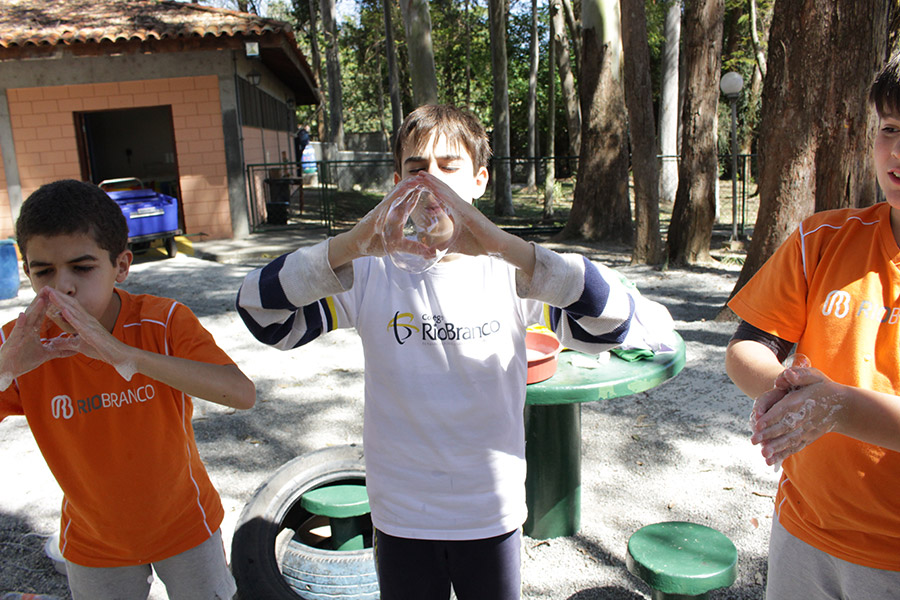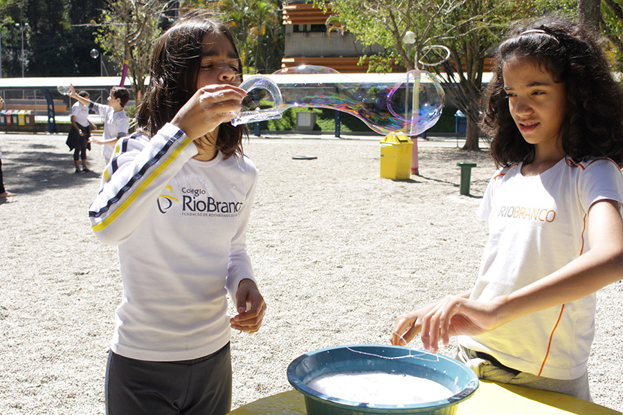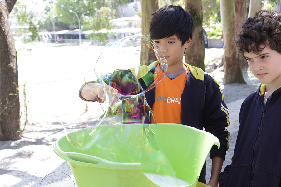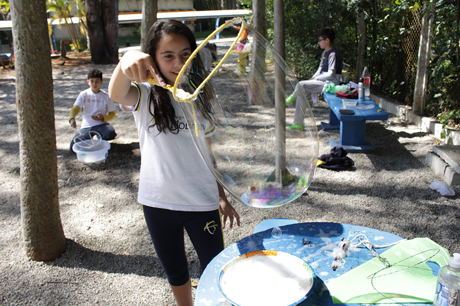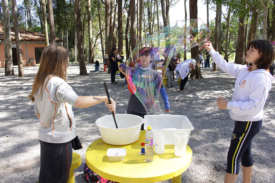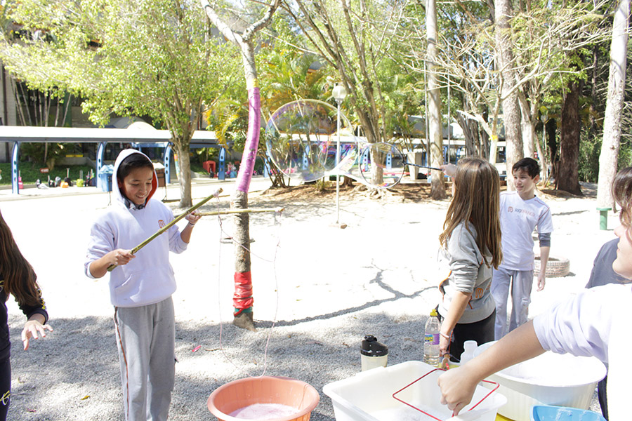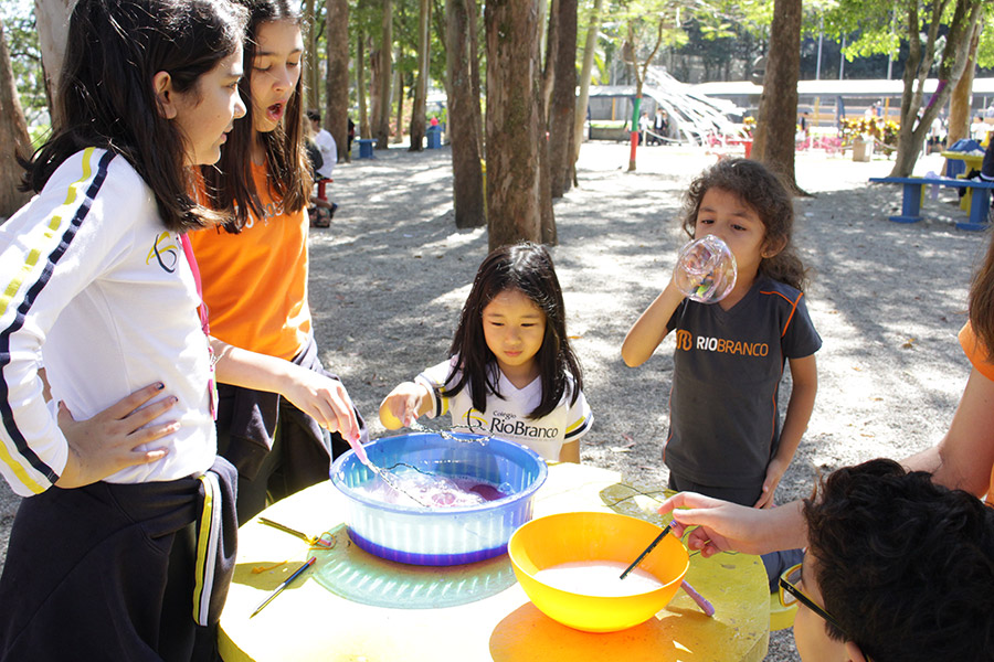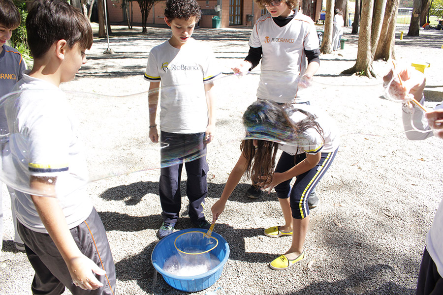 Os alunos do 6° ano do Ensino Fundamental da Unidade Granja Vianna realizaram um lindo trabalho sobre Atmosfera, utilizando a construção de bolhas de sabão como forma de ilustração e ludicidade, com a presença e visita das crianças do Jardim I.