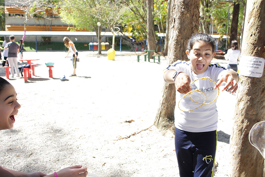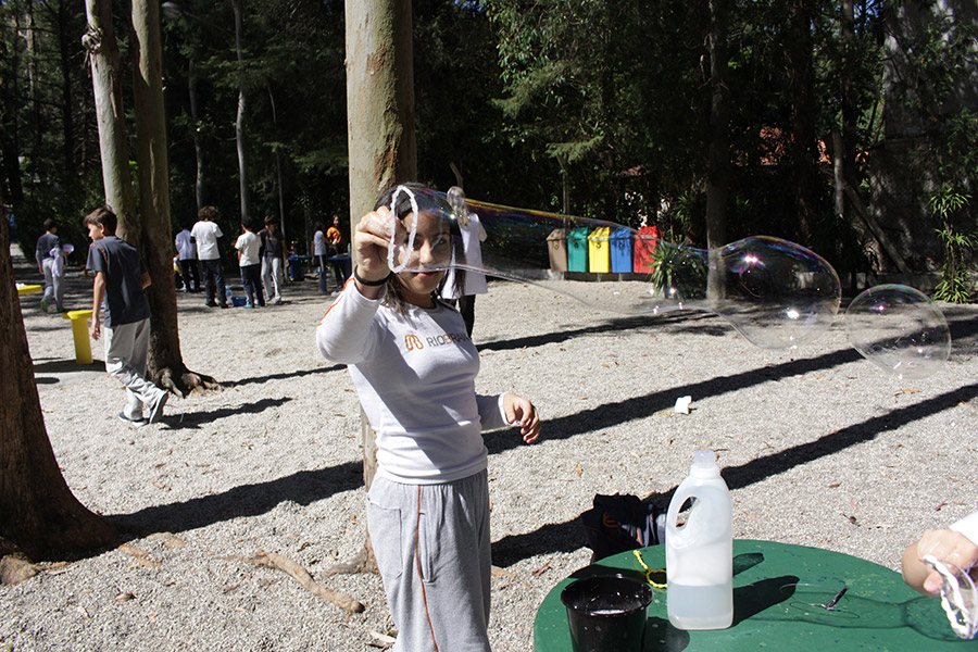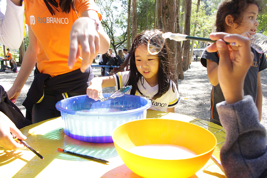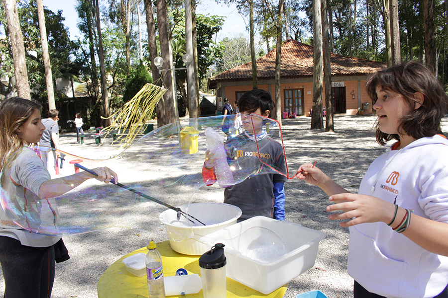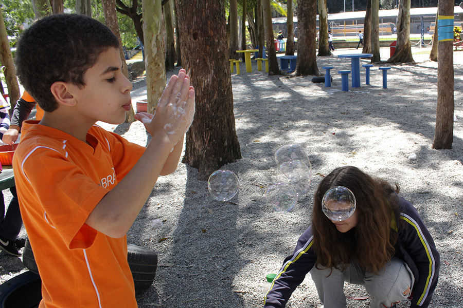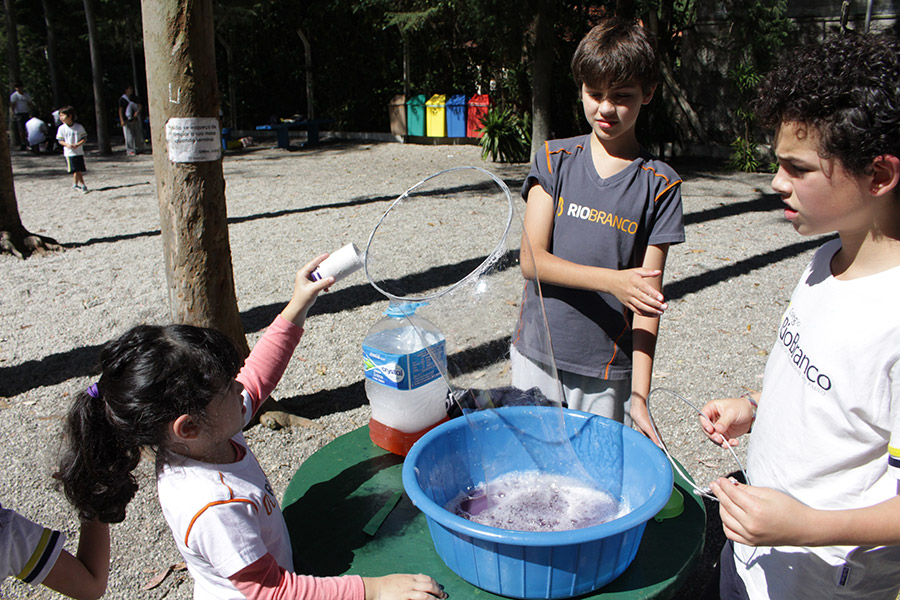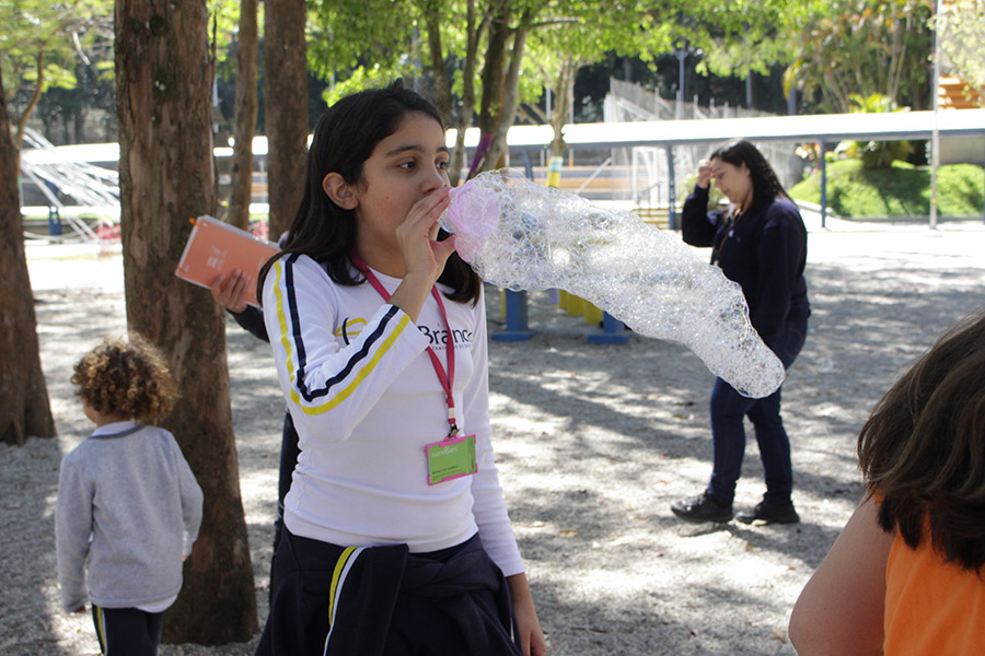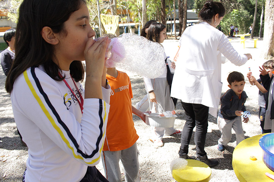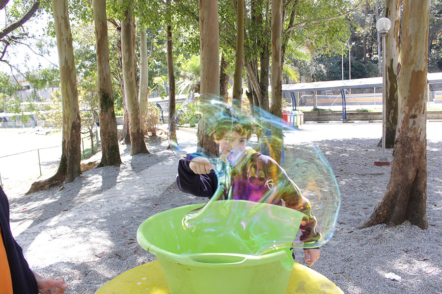 Os alunos do 6° ano do Ensino Fundamental da Unidade Granja Vianna realizaram um lindo trabalho sobre Atmosfera, utilizando a construção de bolhas de sabão como forma de ilustração e ludicidade, com a presença e visita das crianças do Jardim I.