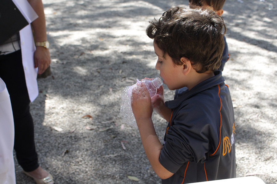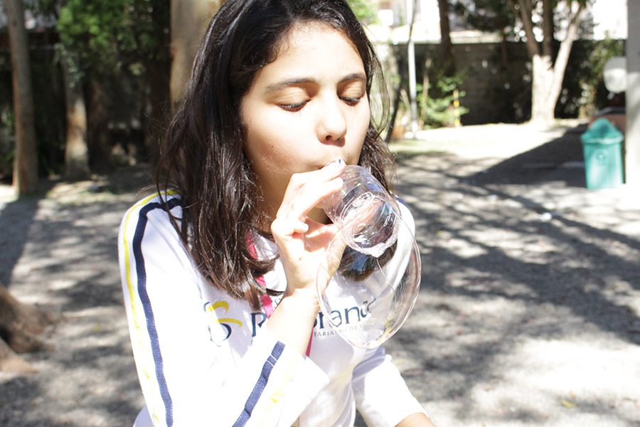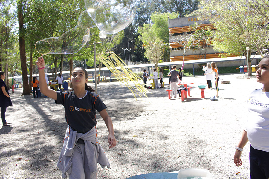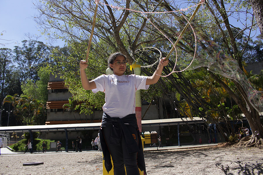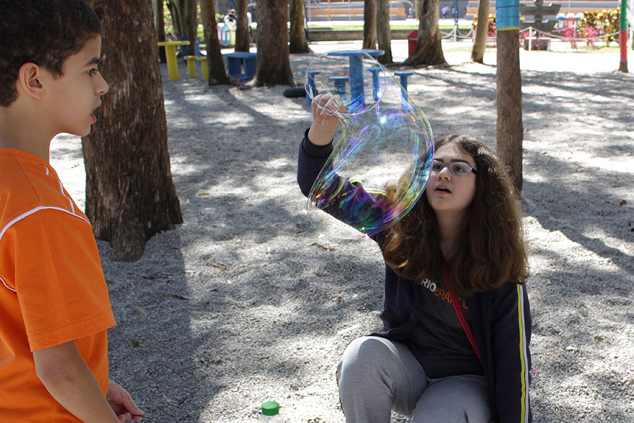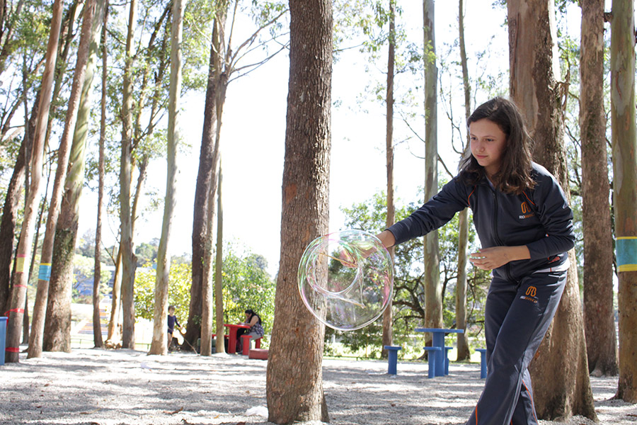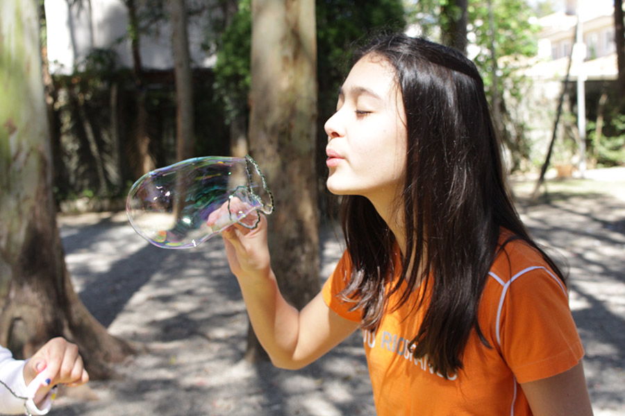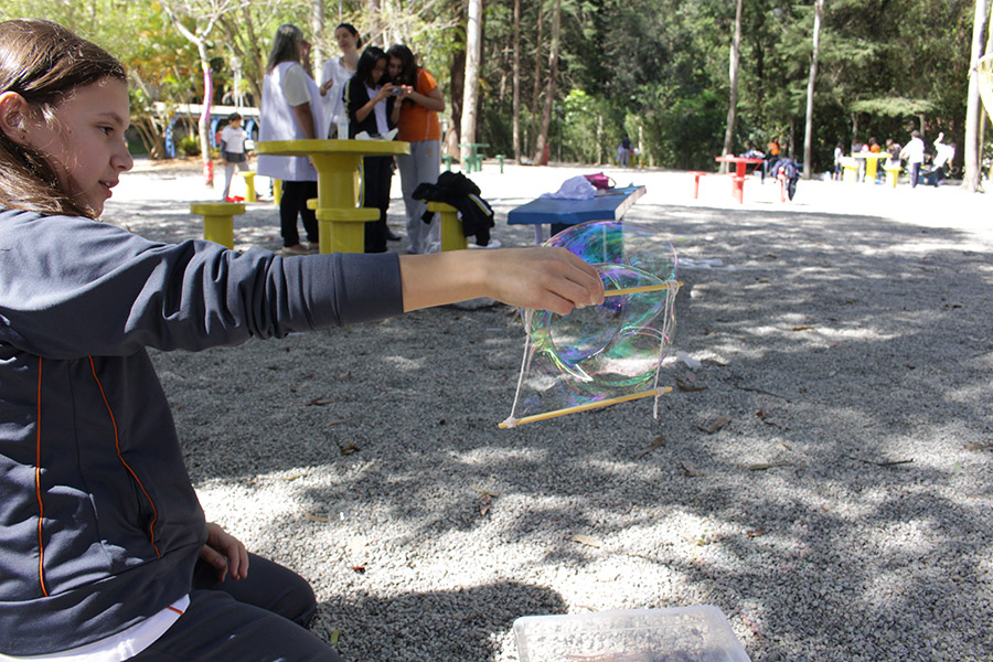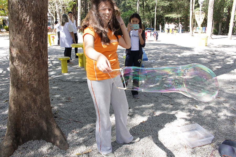 “Estudamos esse tema com os alunos na sala de aula e a construção das bolhas de sabão era pra relacionar o processo de respiração com a liberação e absorção de gases e compreender que o ar é uma mistura formada por vários gases”, explicou a professora de Ciências, Elaine Lupiani.